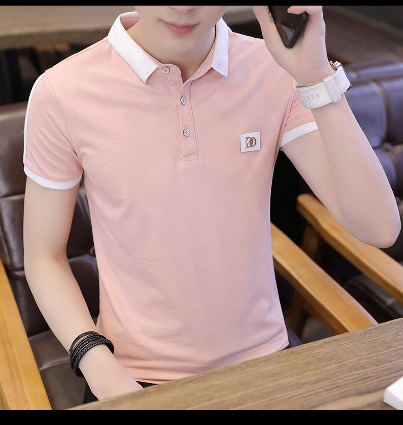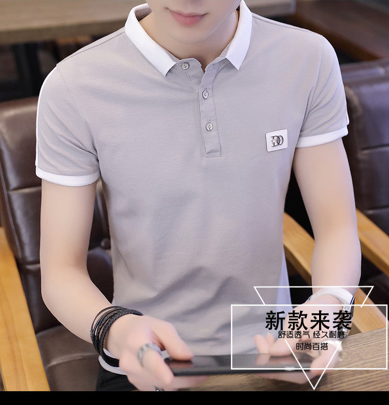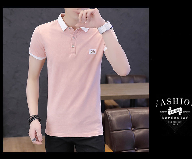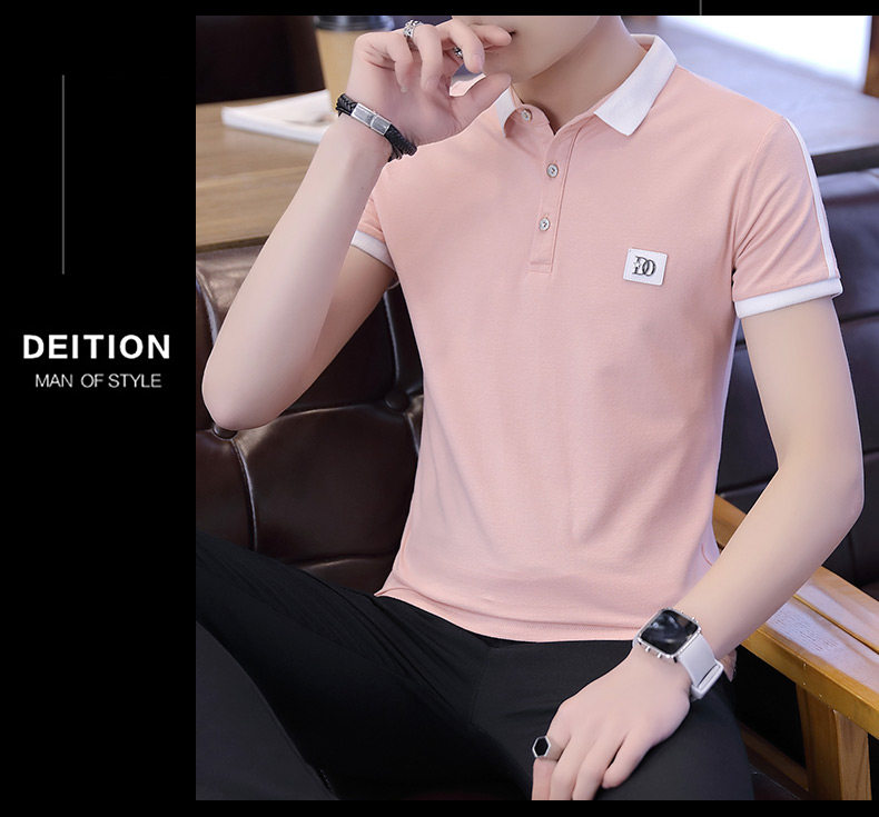 Летняя тонкая трендовая футболка polo, модная рубашка, короткий рукав, в корейском стиле, высокий воротник