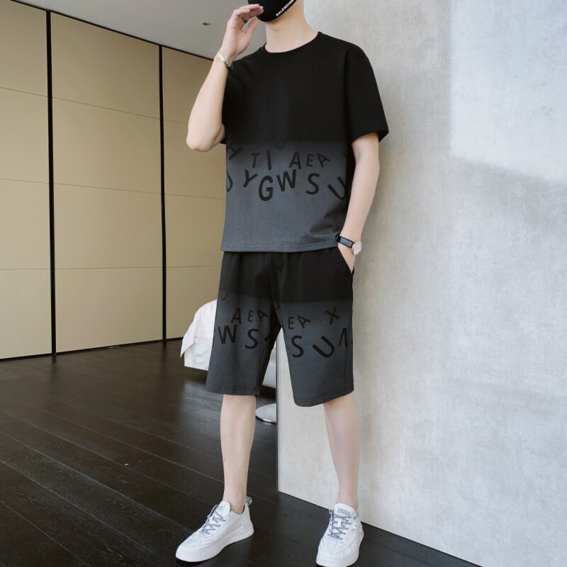 Спортивный костюм, шелковая тонкая футболка с коротким рукавом, модные штаны