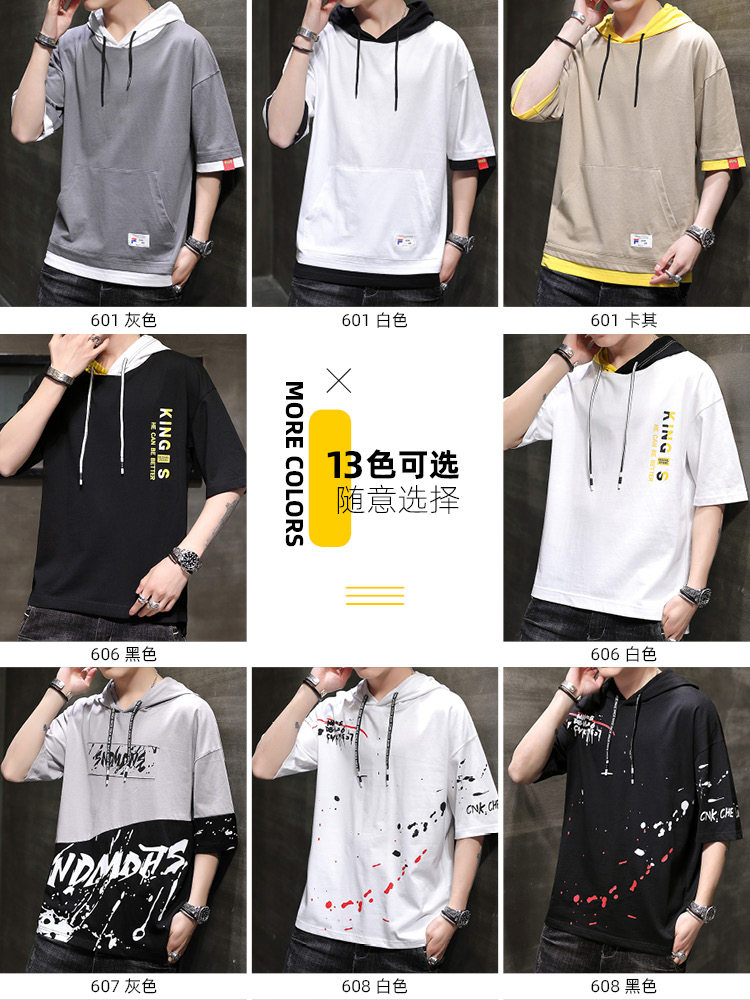 Tide, хлопковая тонкая футболка, толстовка, универсальный шелковый комплект с капюшоном