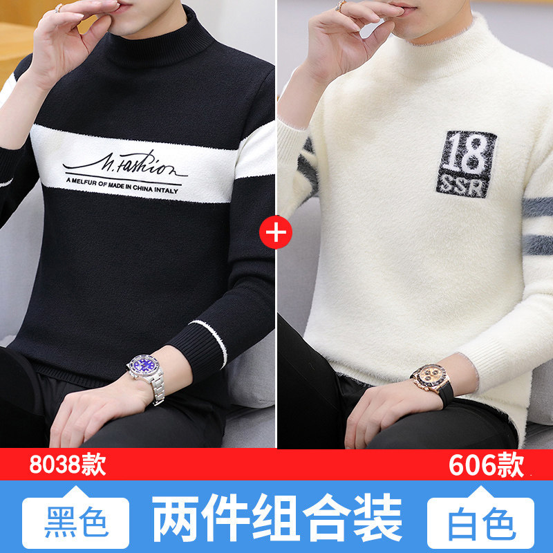 Мужской демисезонный бархатный трендовый удерживающий тепло трикотажный свитер, высокий воротник, увеличенная толщина