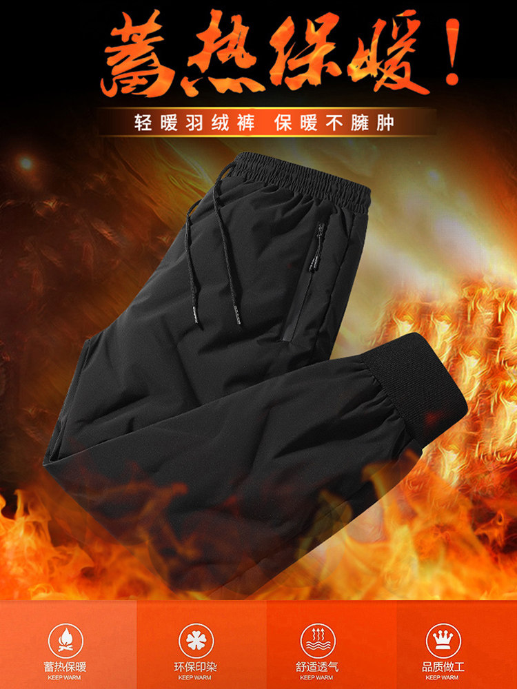 Мужские зимние дорожные удерживающие тепло ветрозащитные штаны с пухом для отдыха, увеличенная толщина