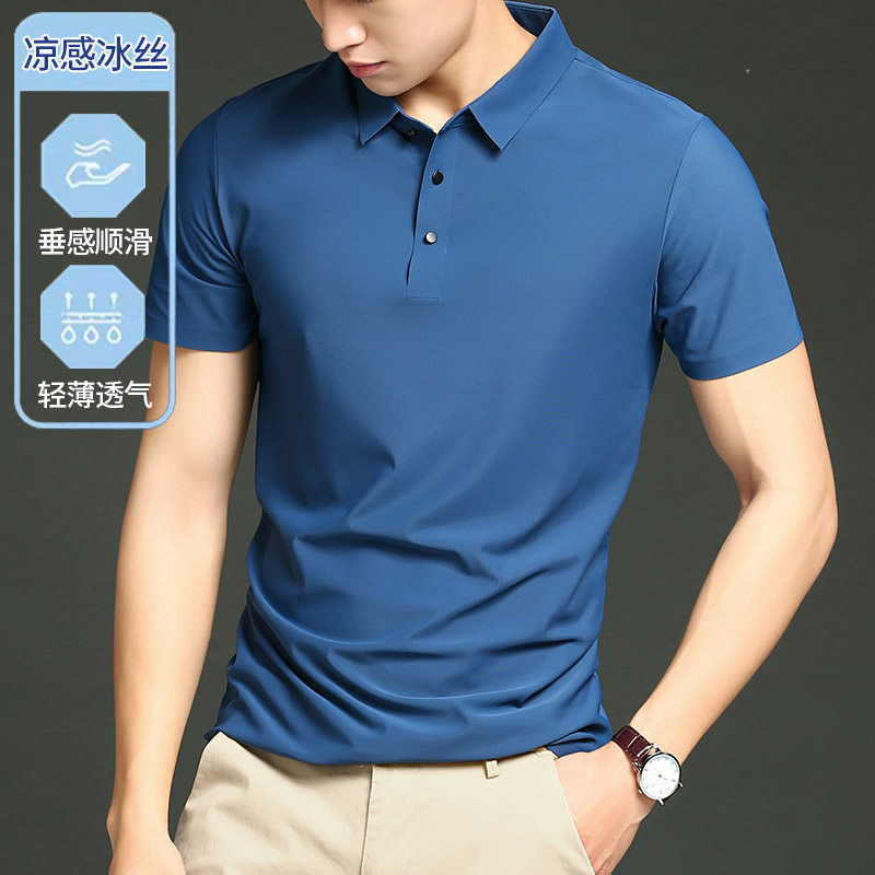 Шелковая дышащая цветная футболка polo, короткий рукав, в корейском стиле