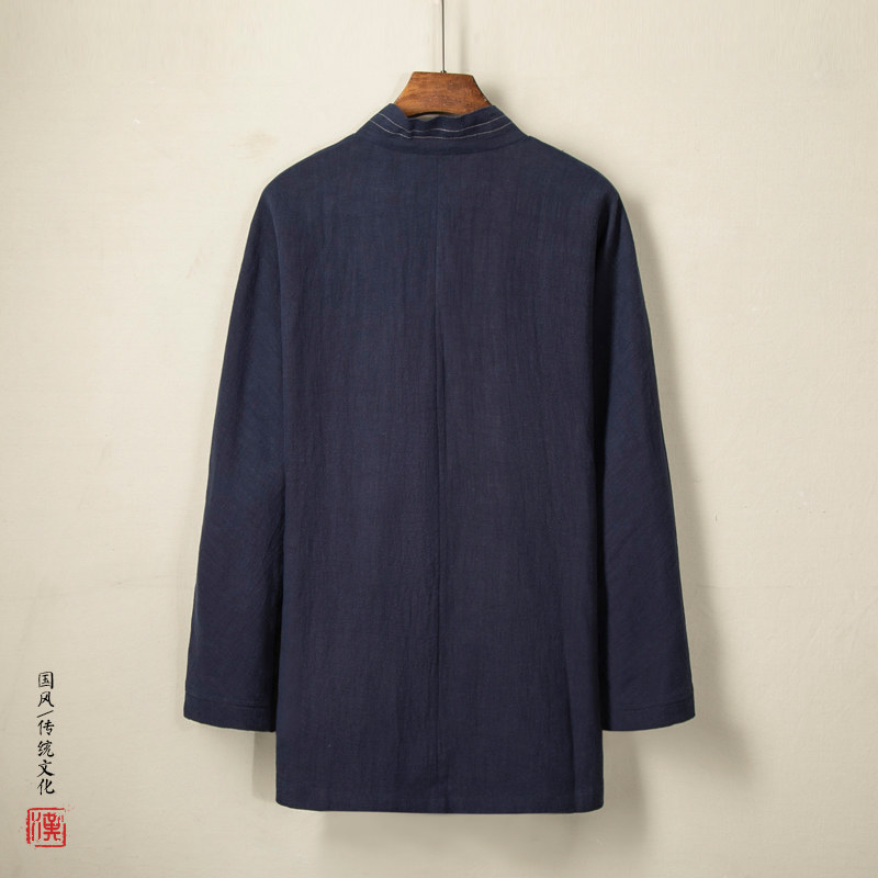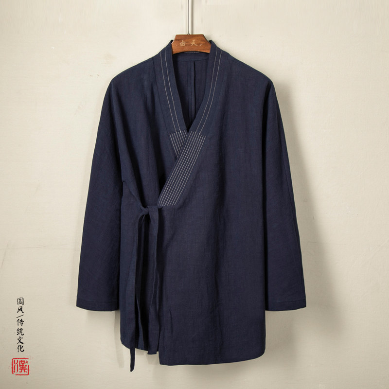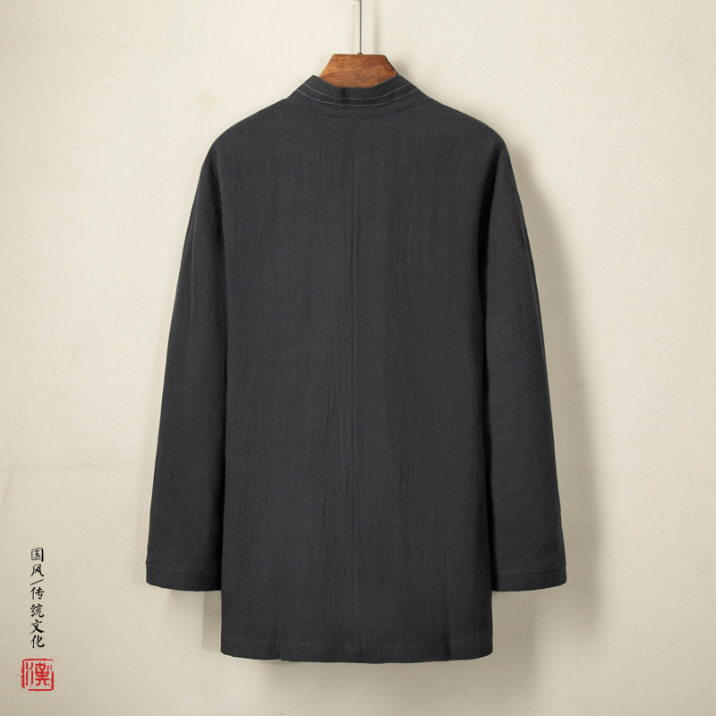 Демисезонное ханьфу, этническая мужская куртка, рубашка, китайский стиль, из хлопка и льна