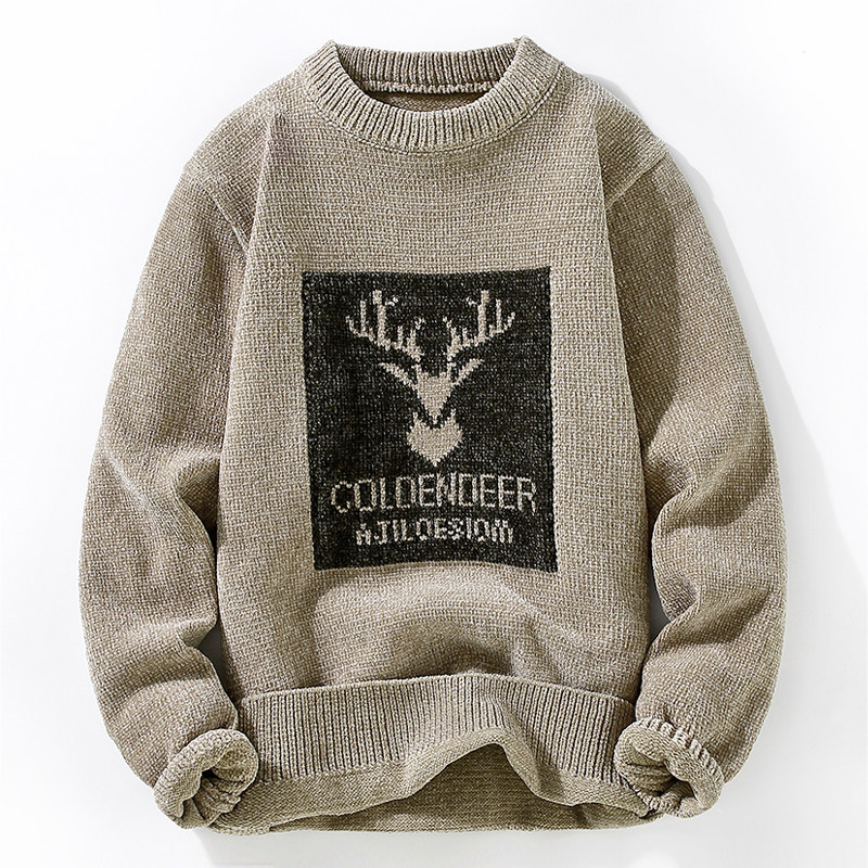 Мужской ретро демисезонный свитер с круглым воротником, базовый приятный телу трикотажный пуховик, увеличенная толщина
