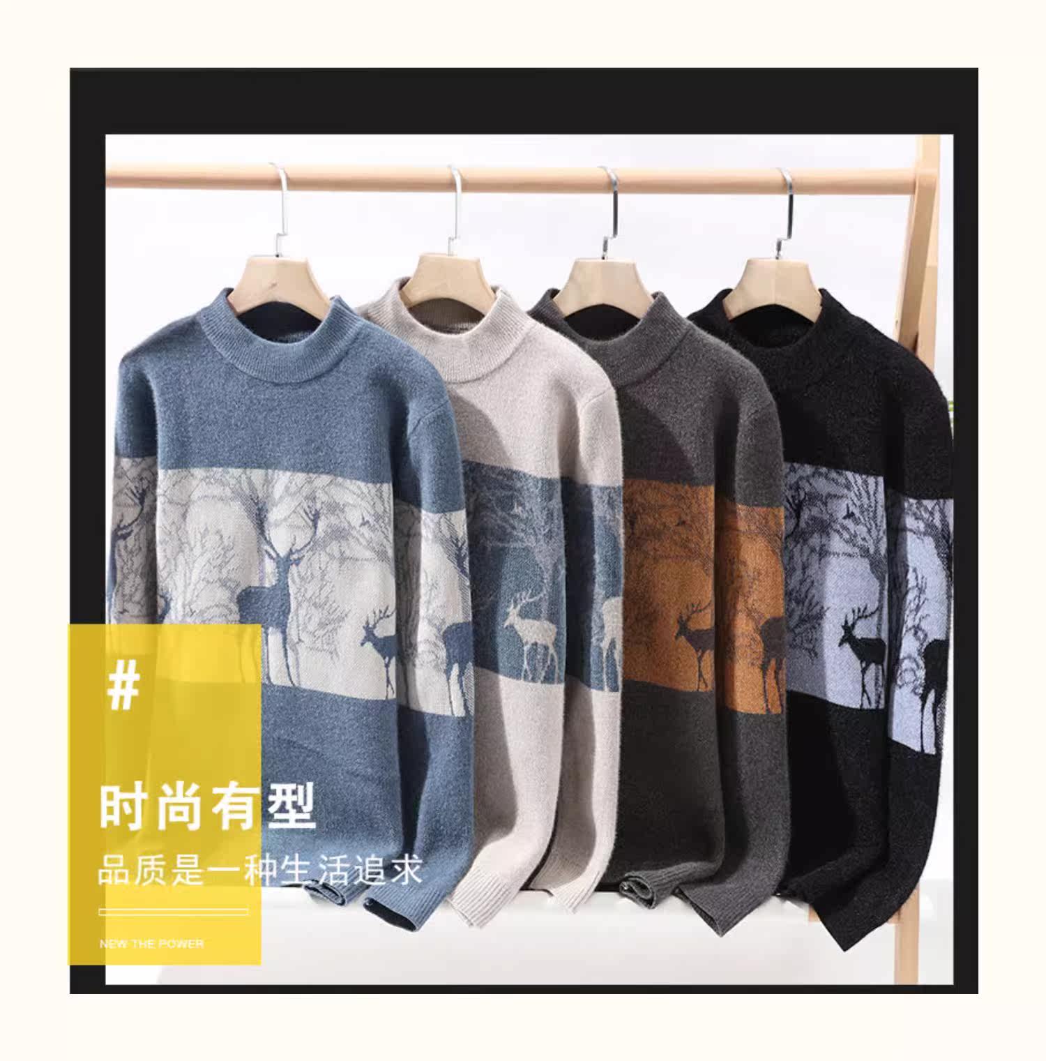 Мужской демисезонный удерживающий тепло трикотажный базовый приятный телу утепленный свитер, высокий воротник