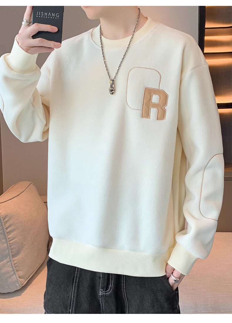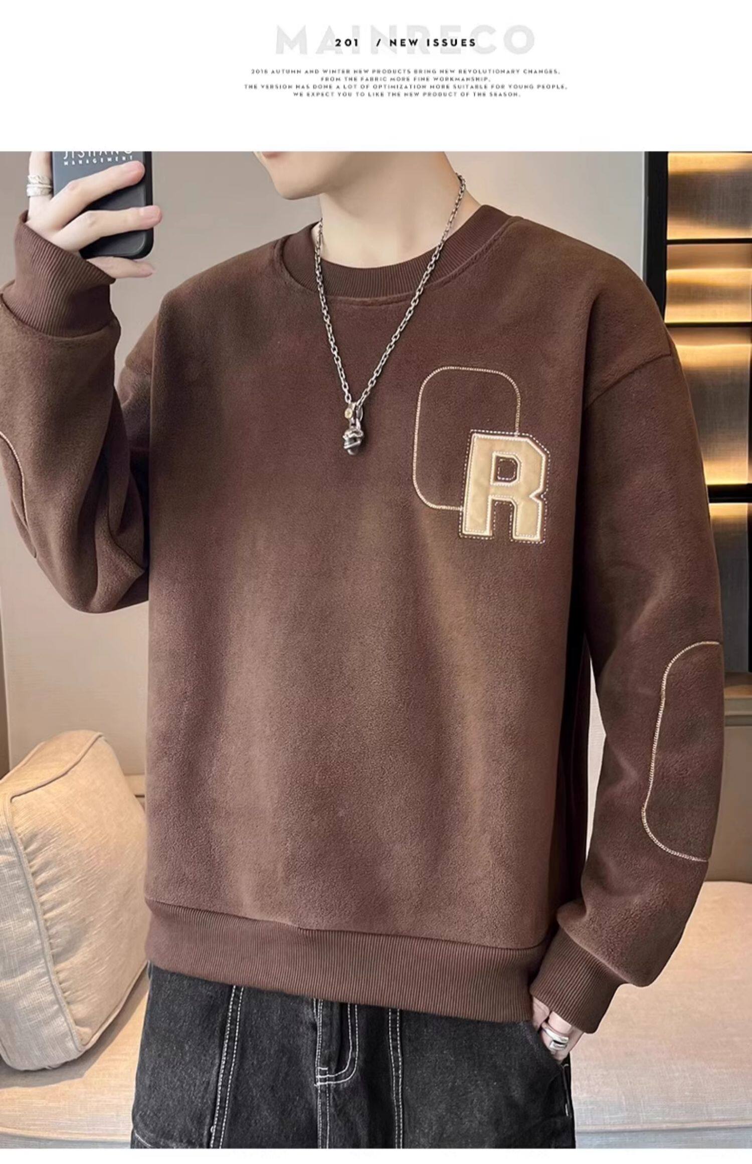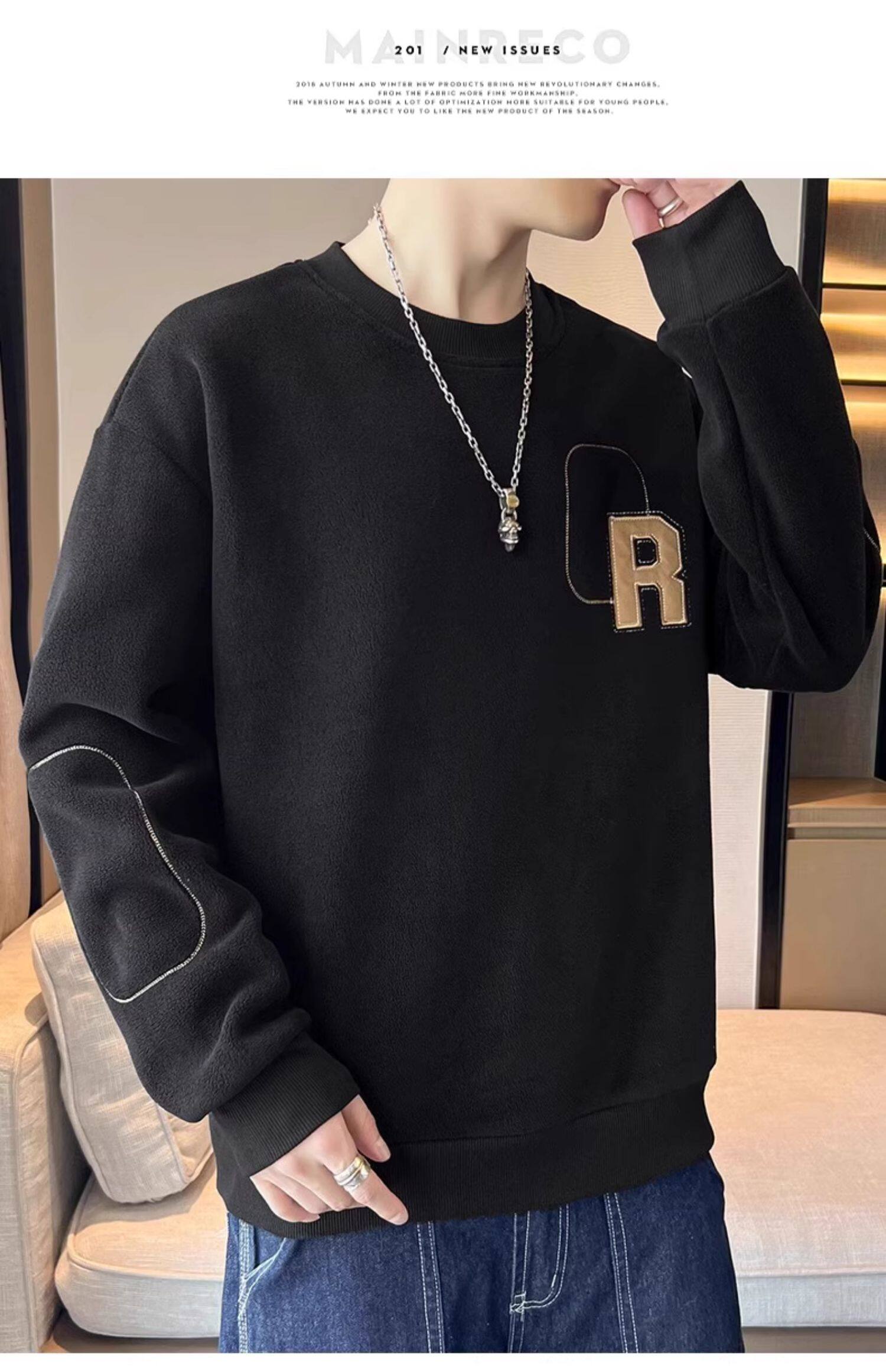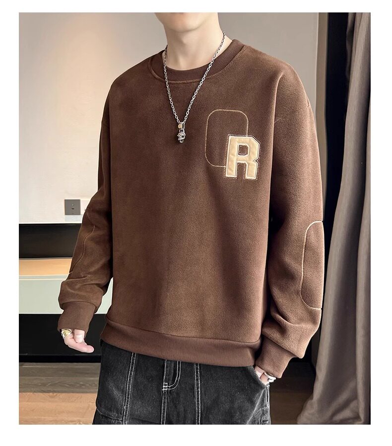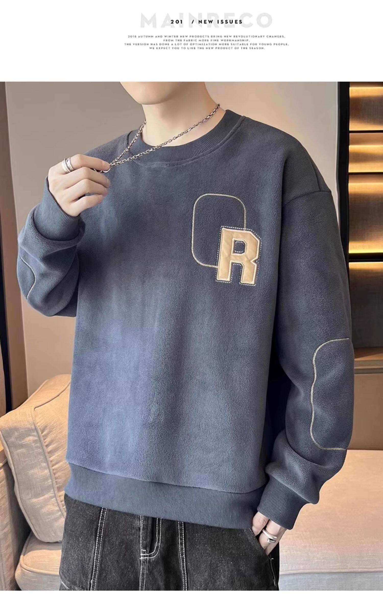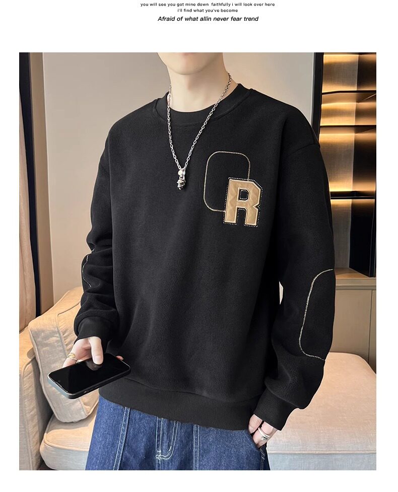 Мужская демисезонная утепленная толстовка, бархатный удерживающий тепло лонгслив с круглым воротником, увеличенная толщина