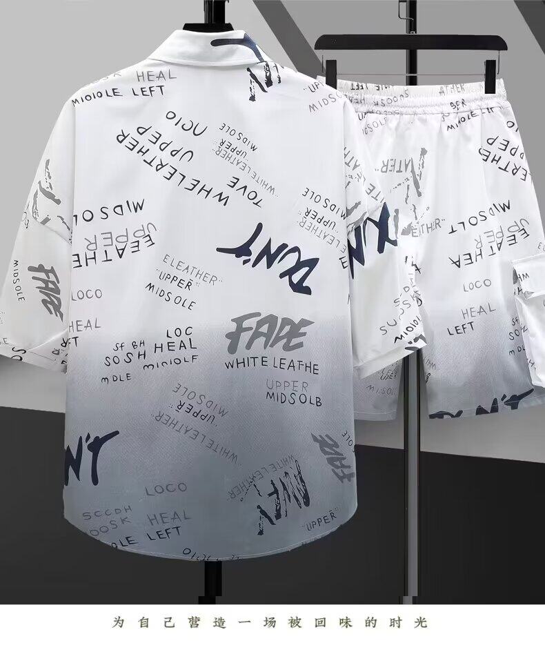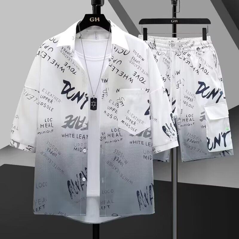 Шелковая летняя рубашка, шорты, штаны, комплект, короткий рукав