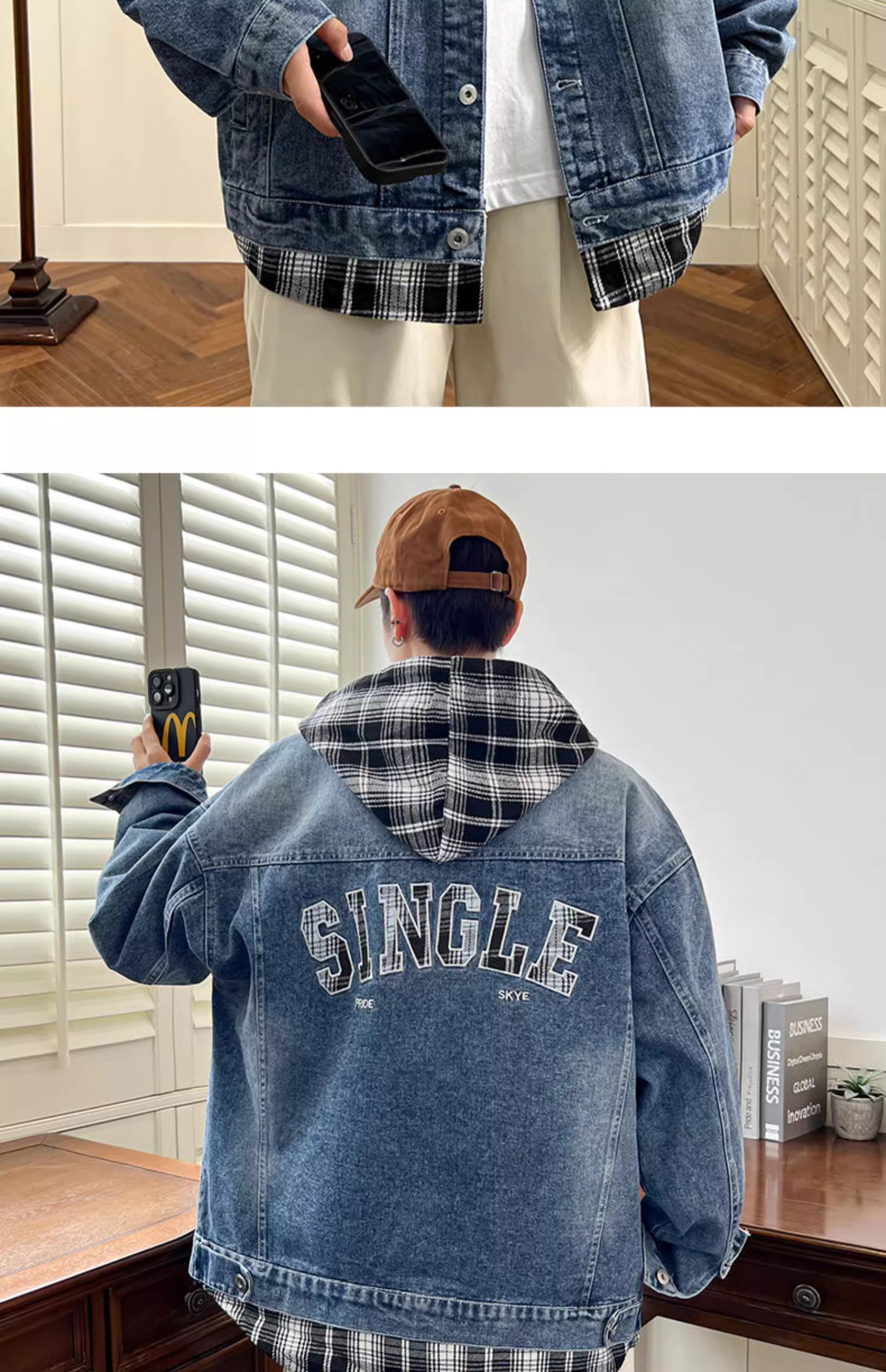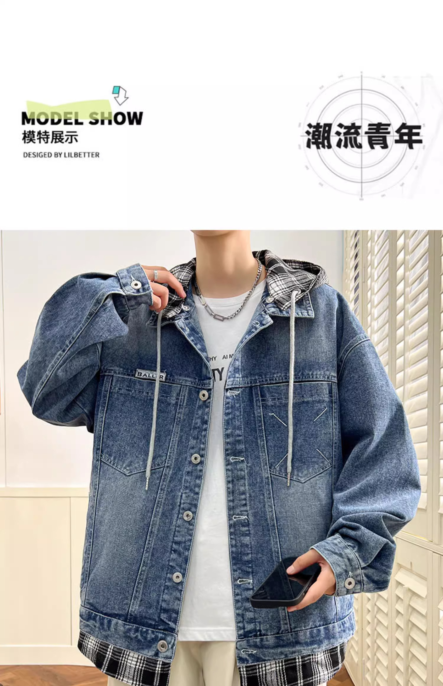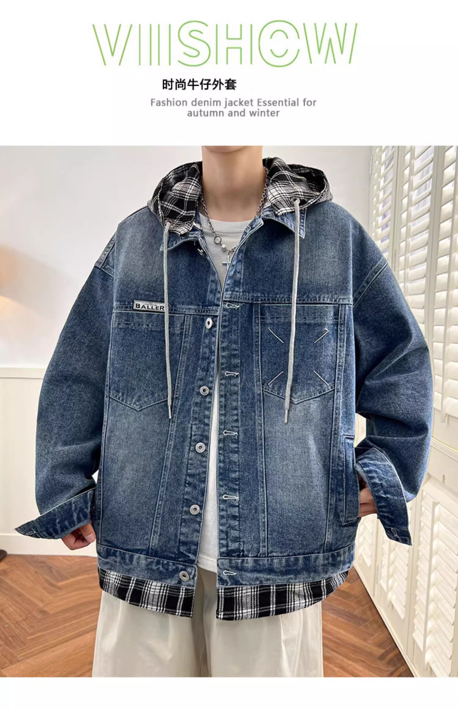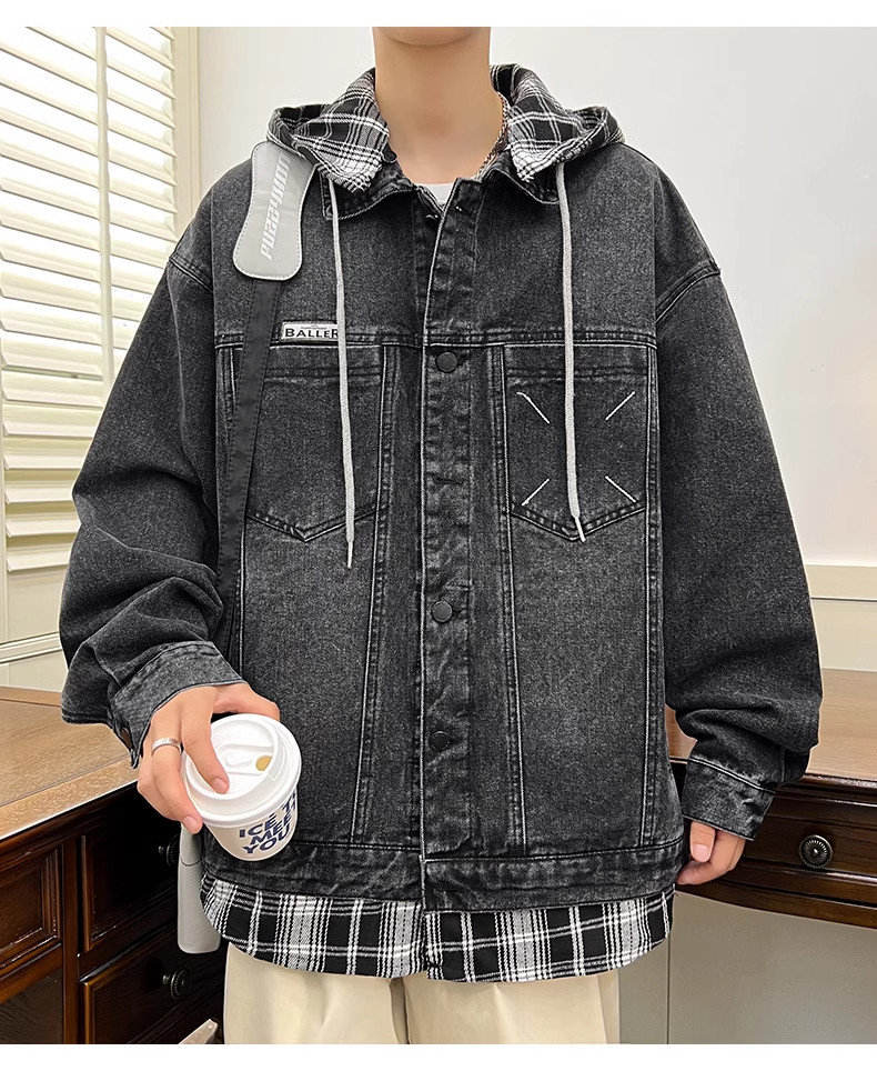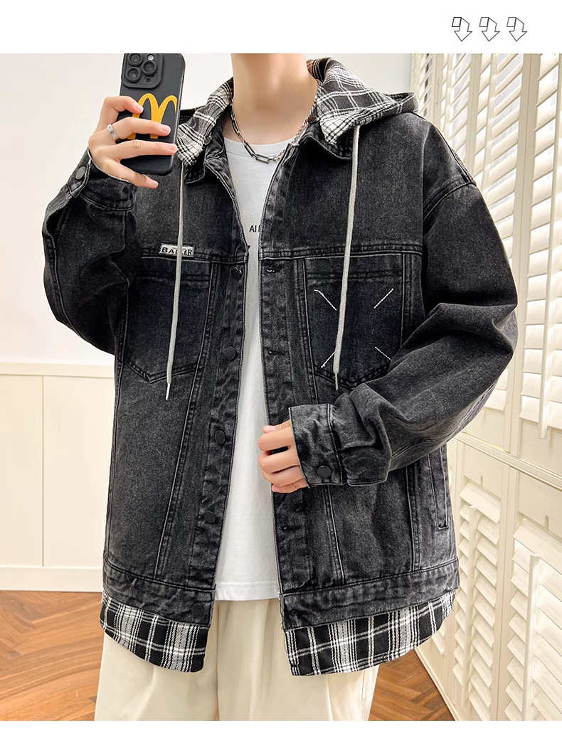 Комплект с капюшоном, мужская весенняя осенняя джинсовая куртка, 2025 года