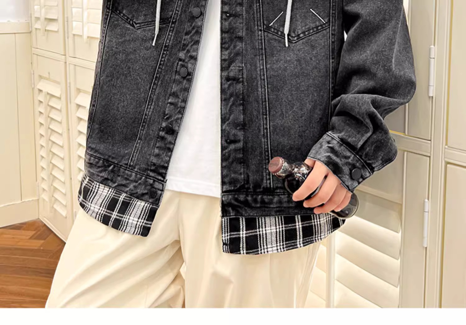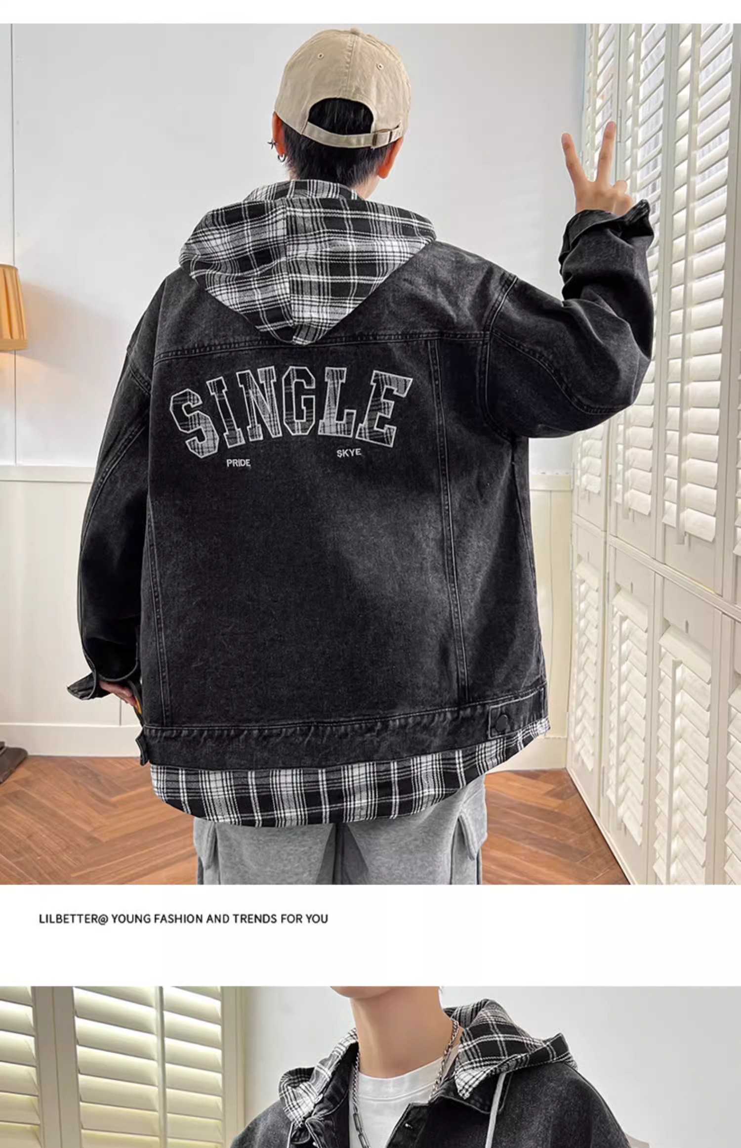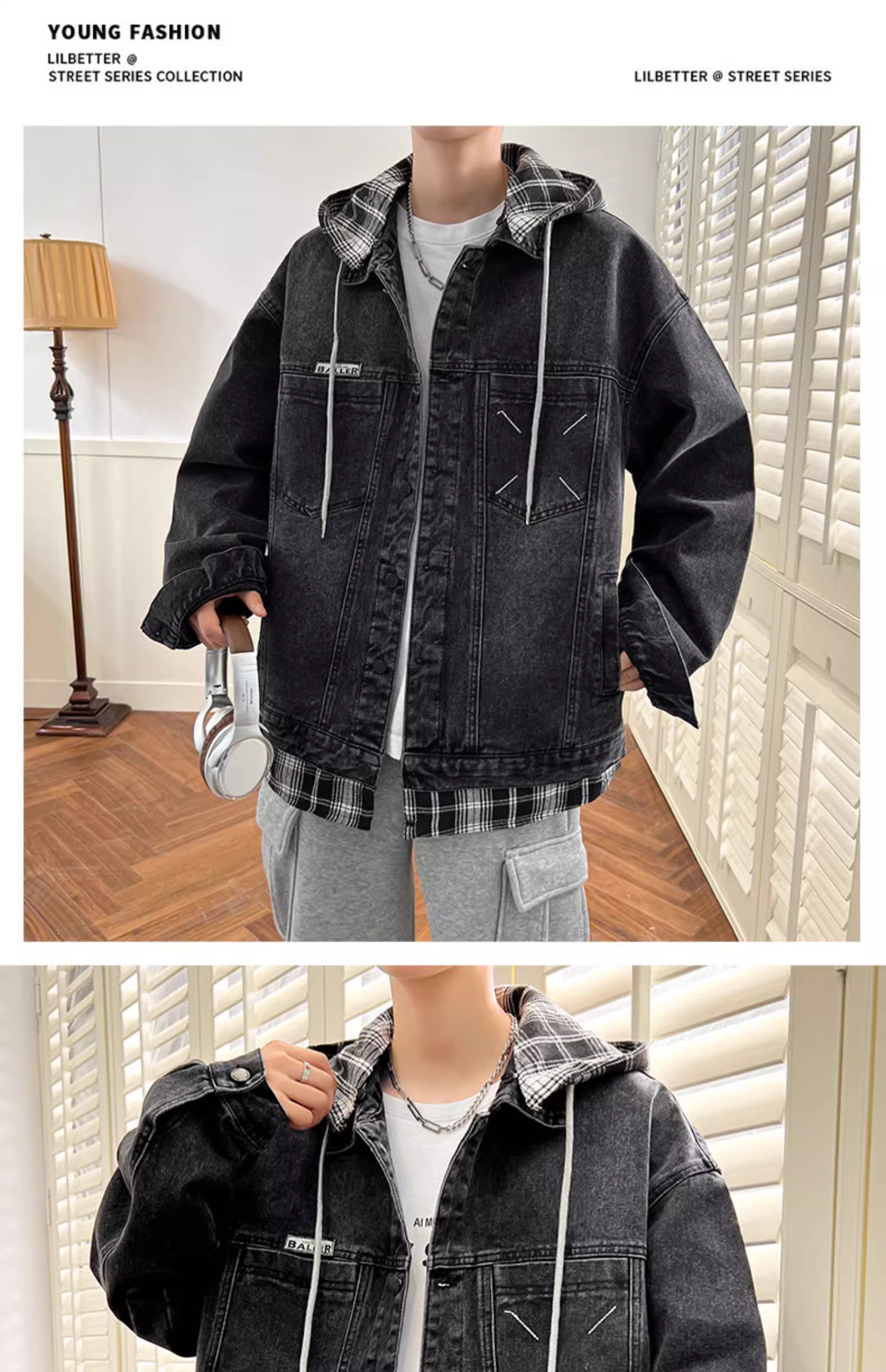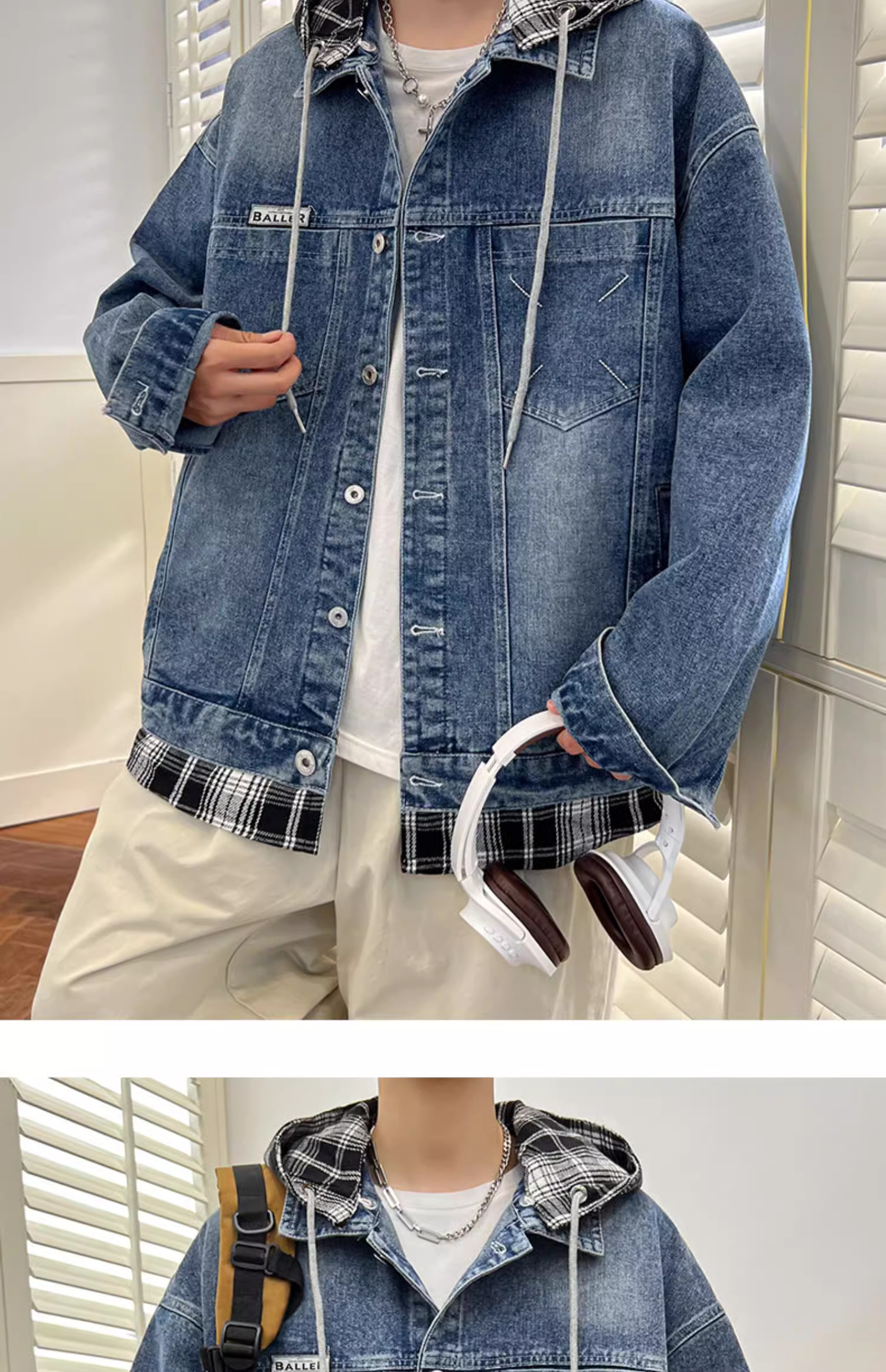 Комплект с капюшоном, мужская весенняя осенняя джинсовая куртка, 2025 года