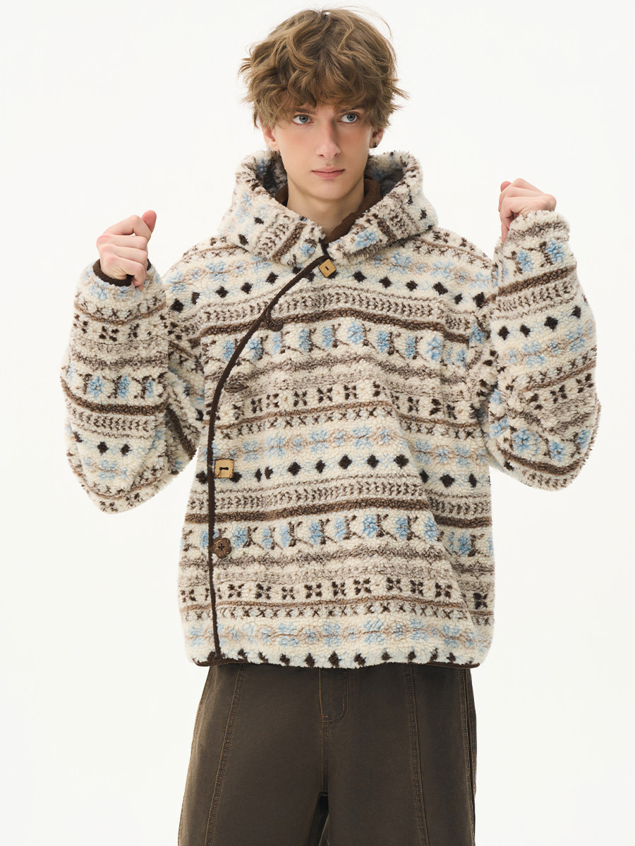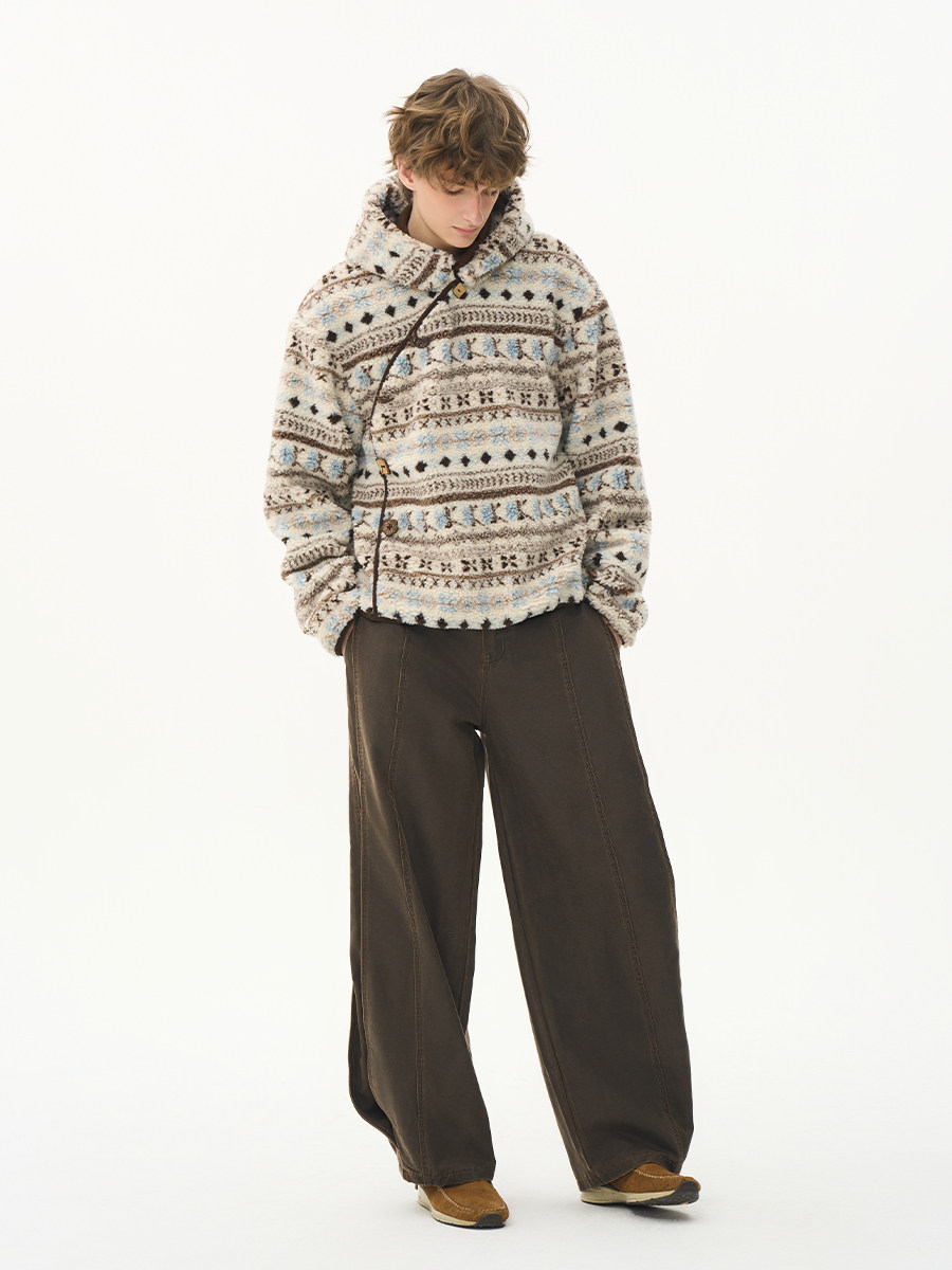 CNEW2025AW [Пастораль] Бархатный пуловер ручной работы с пуговицами из скорлупы кокосового ореха и косой планкой, куртка-толстовка