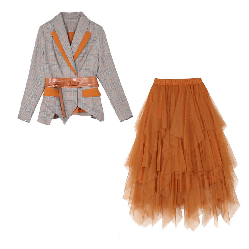 Костюм, платье, осенняя юбка, комплект, из фатина, городской стиль, осенний, большой размер