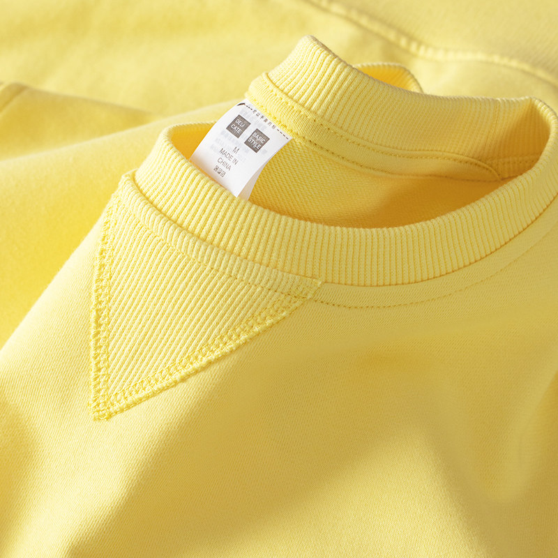 Желтый однотонный ретро базовый приятный телу свитшот с круглым воротником подходит для мужчин и женщин, осенний