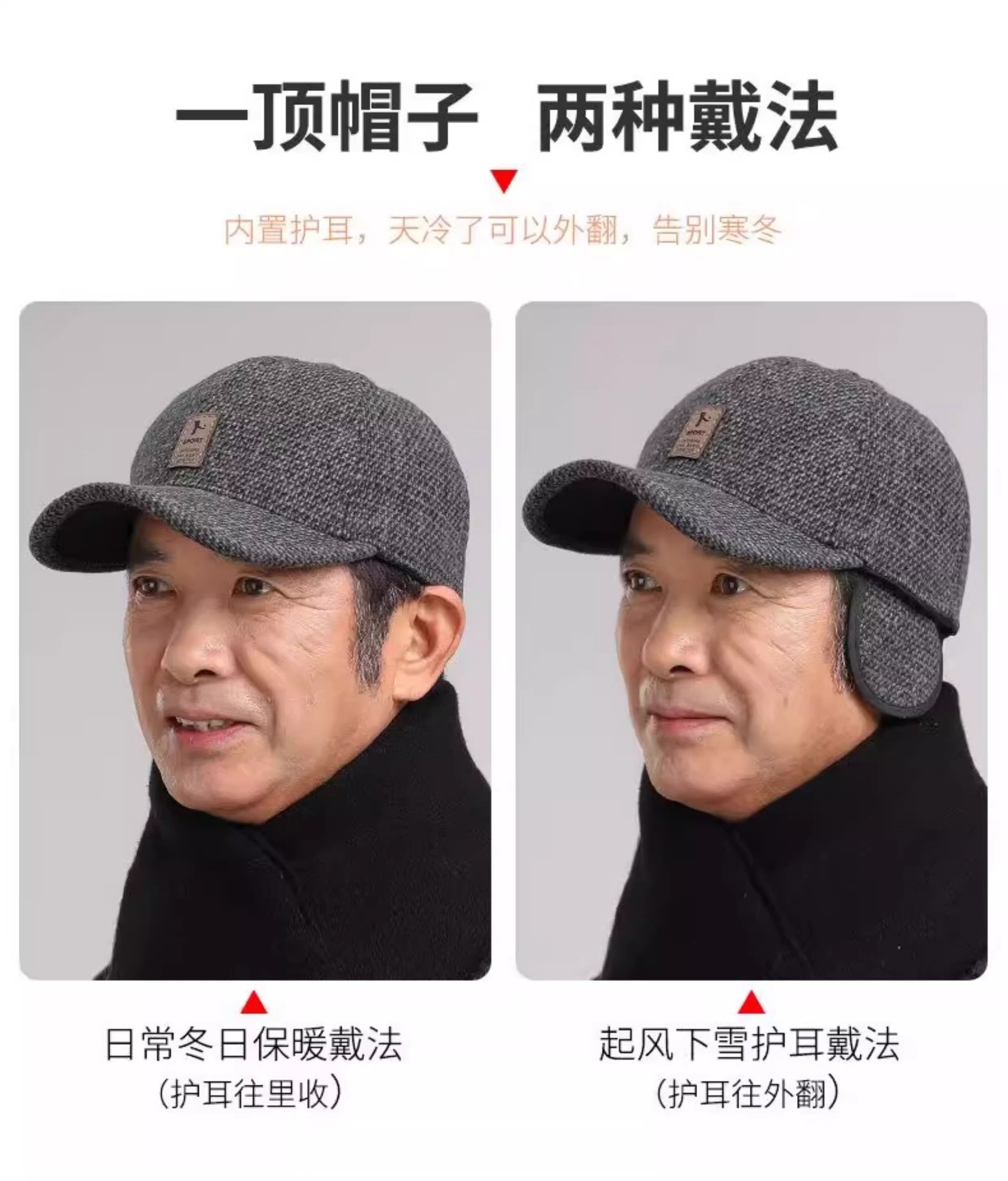 Демисезонная шапка, удерживающая тепло кепка, бейсболка, для среднего возраста