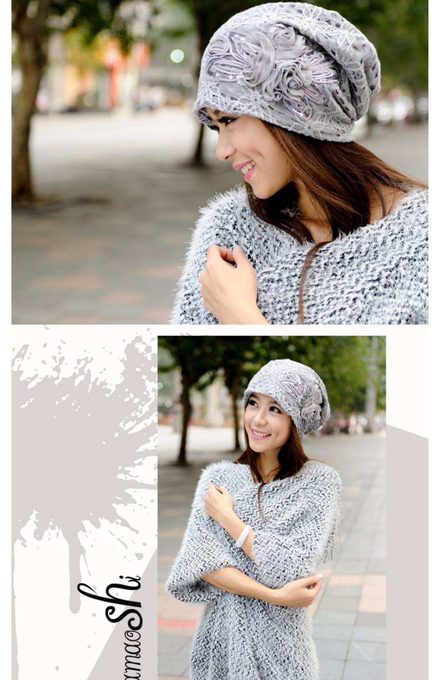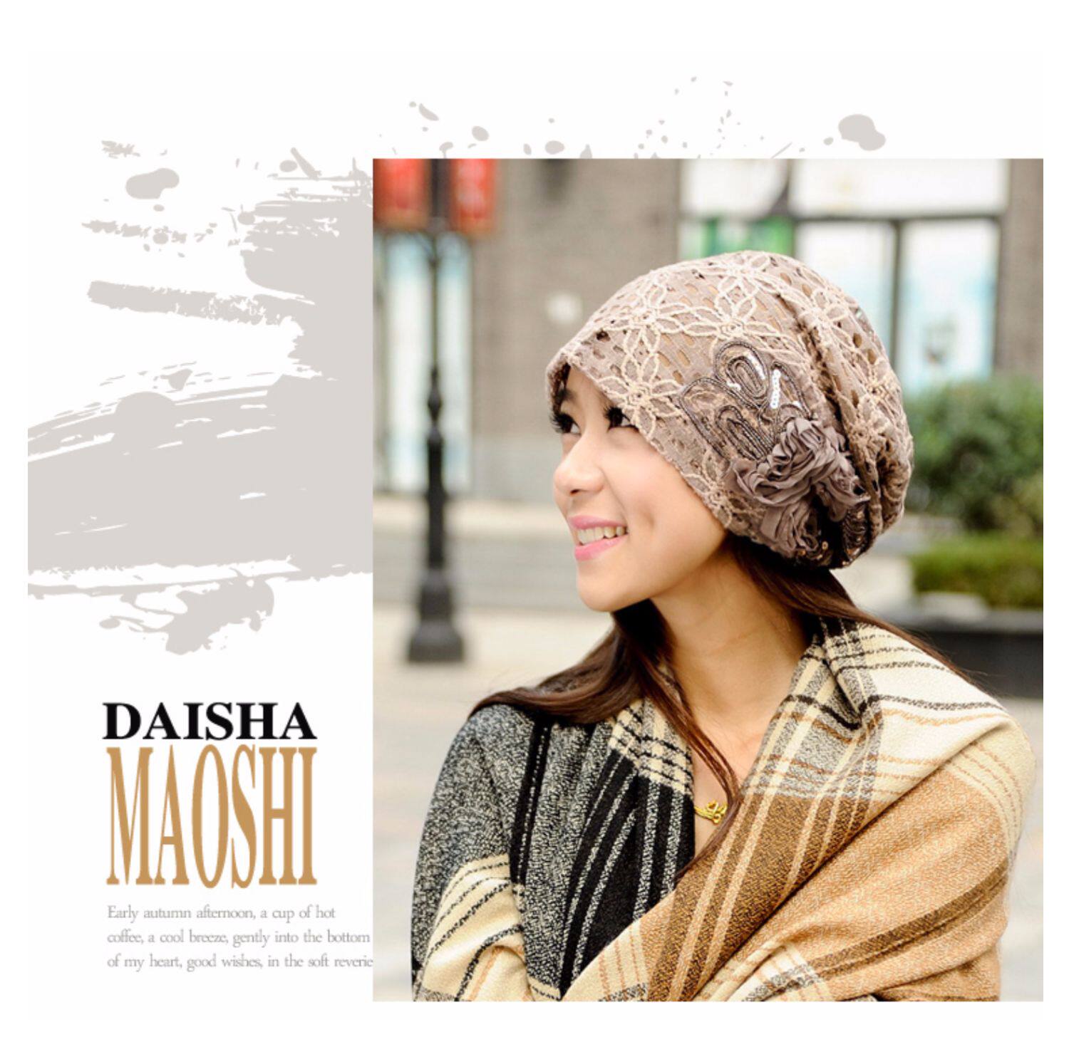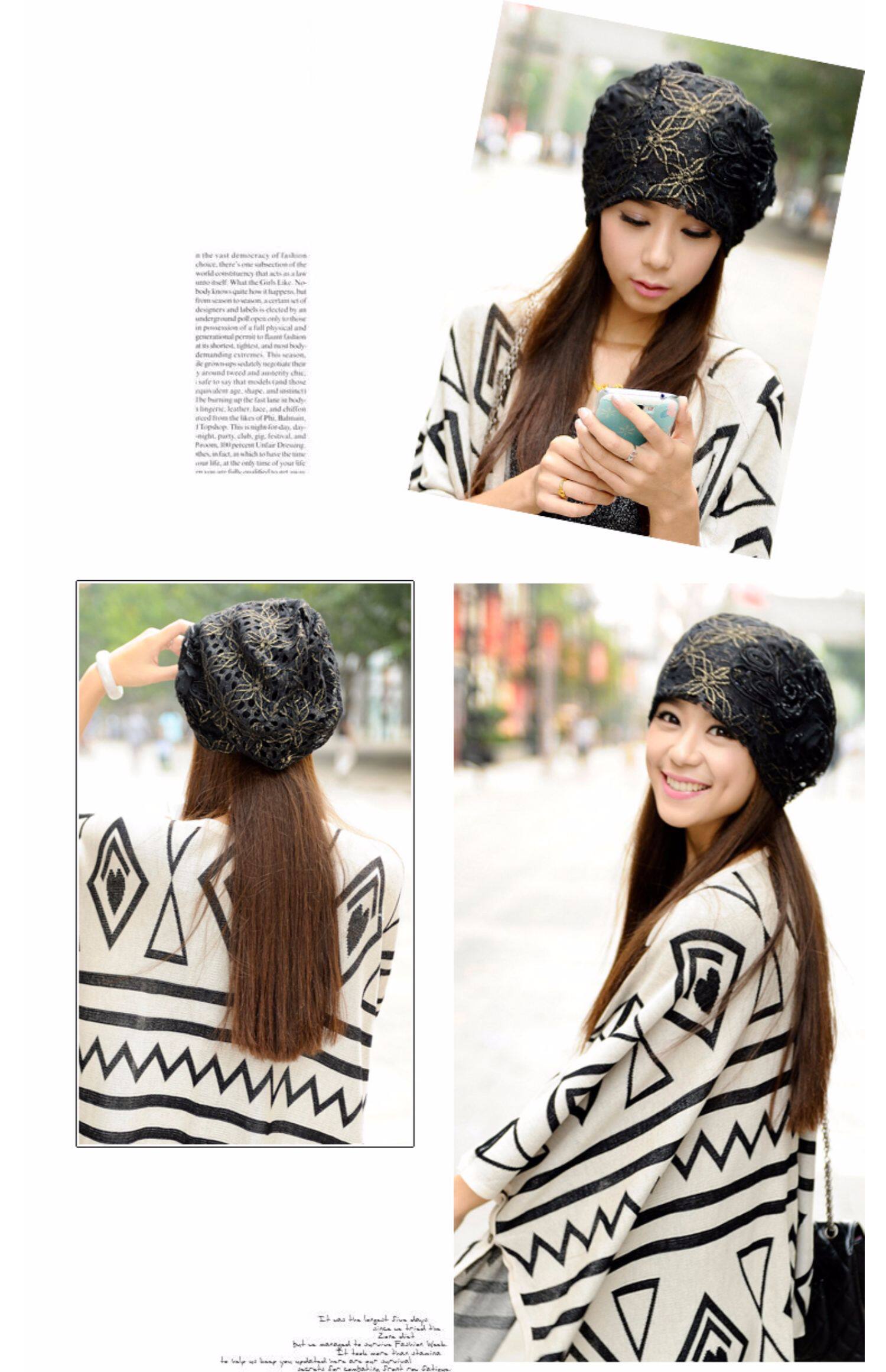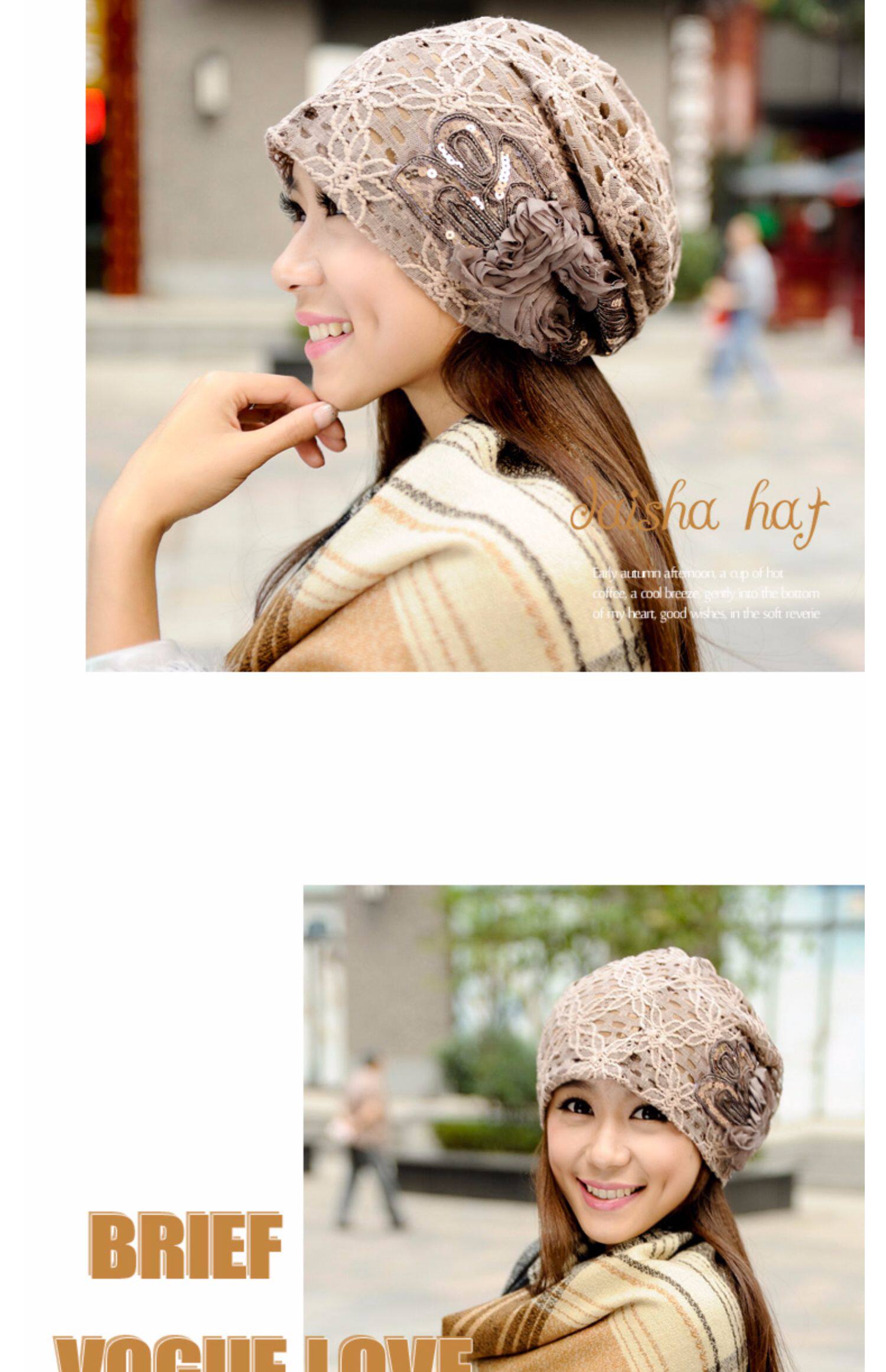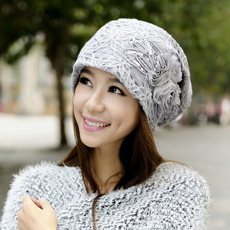 Осенняя модная шапка, тонкий кружевной платок
