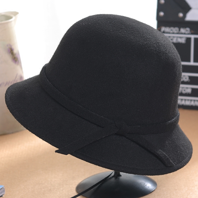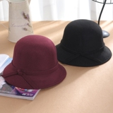 Демисезонная корейская черная шерстяная шапка с бантиком для путешествий