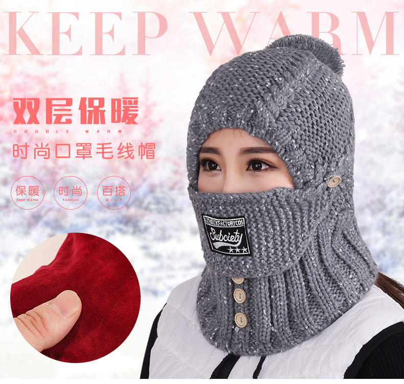 Милая утепленная удерживающая тепло шерстяная вязаная шапка с капюшоном, медицинская маска, в корейском стиле