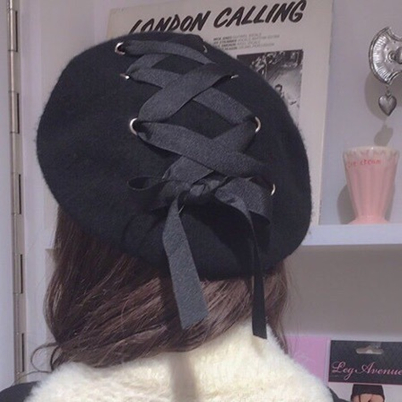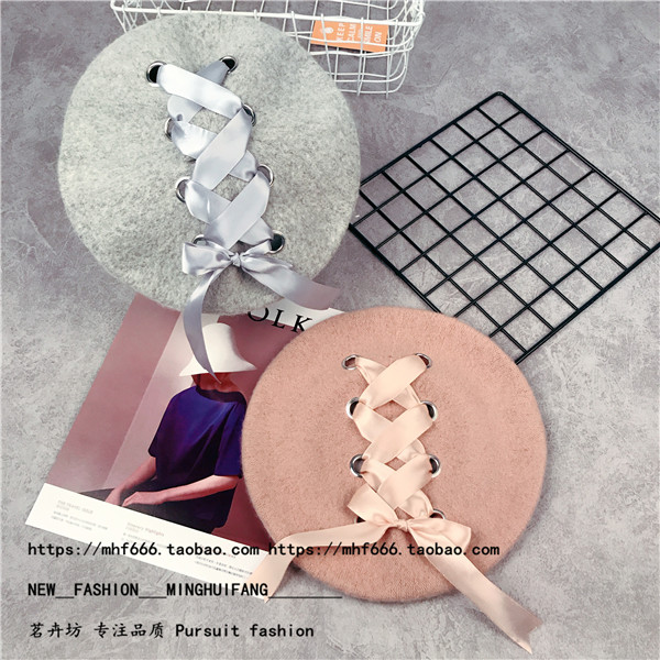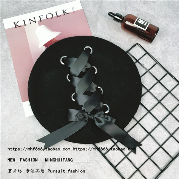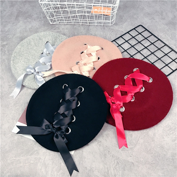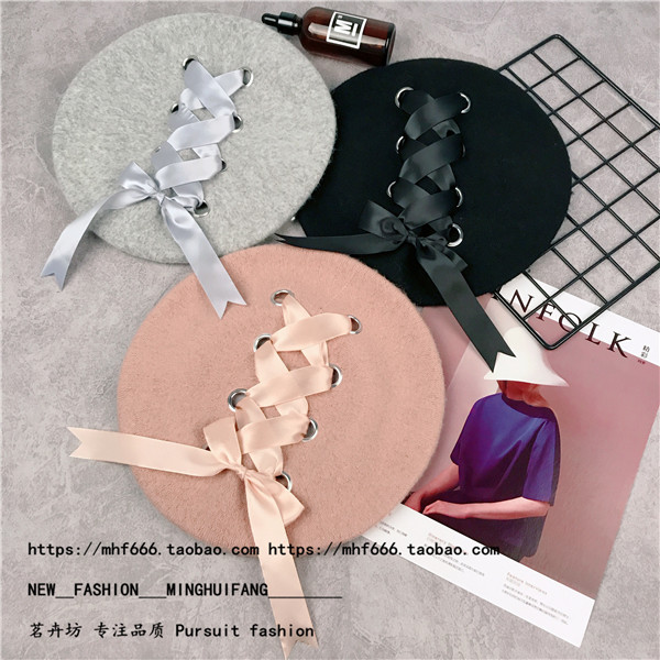 Японский универсальный ремень с бантиком, шерстяной берет с капюшоном, шапка