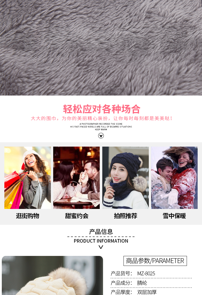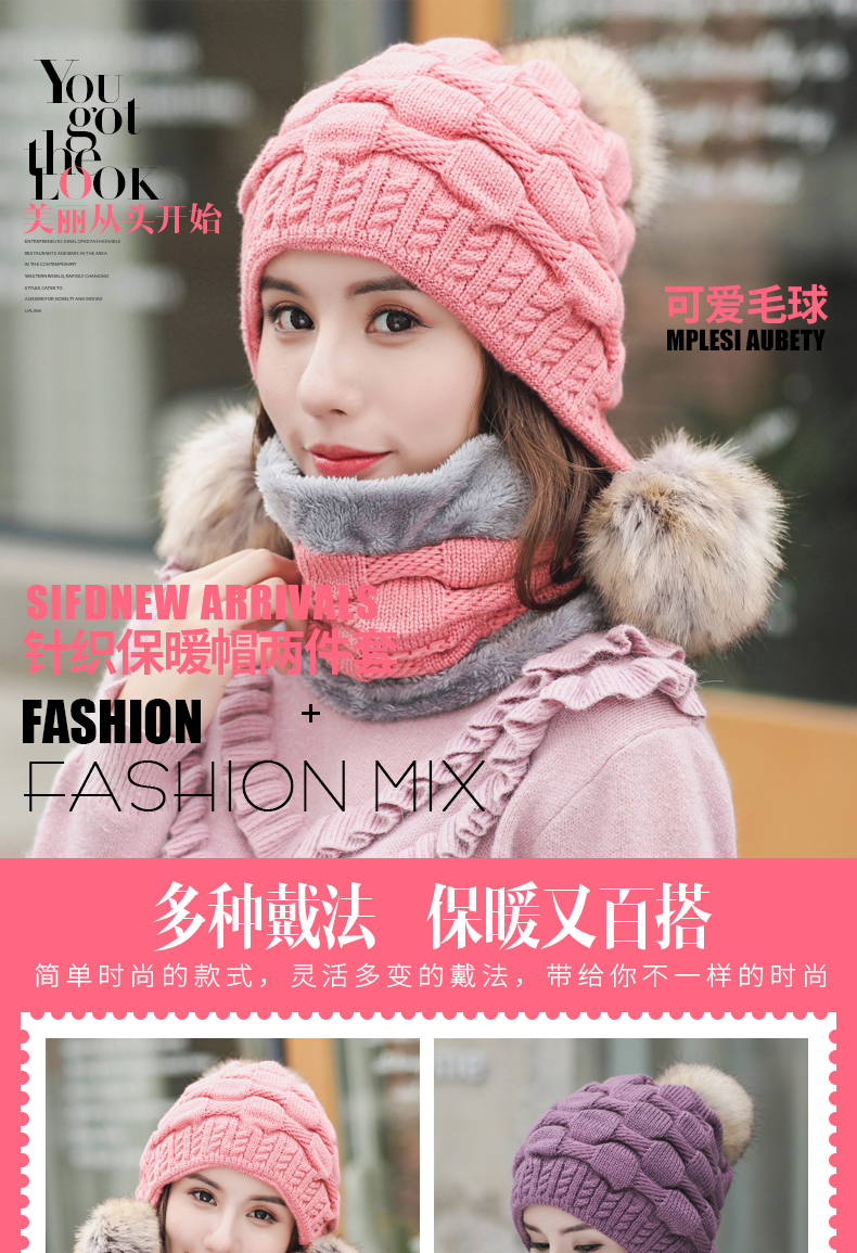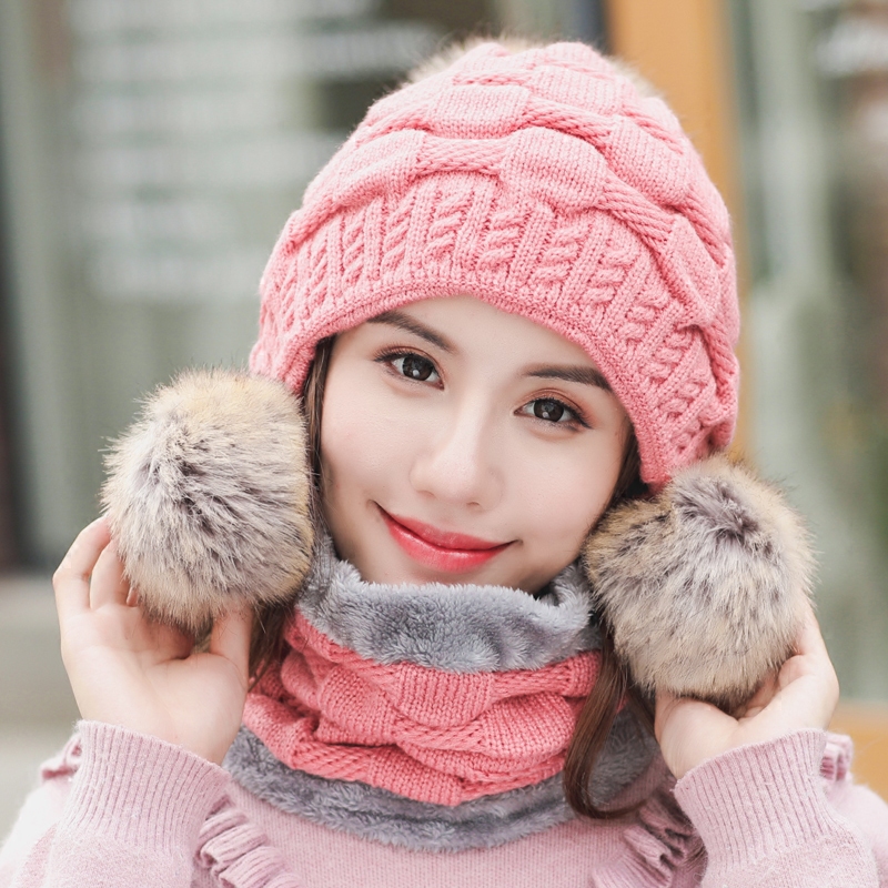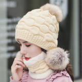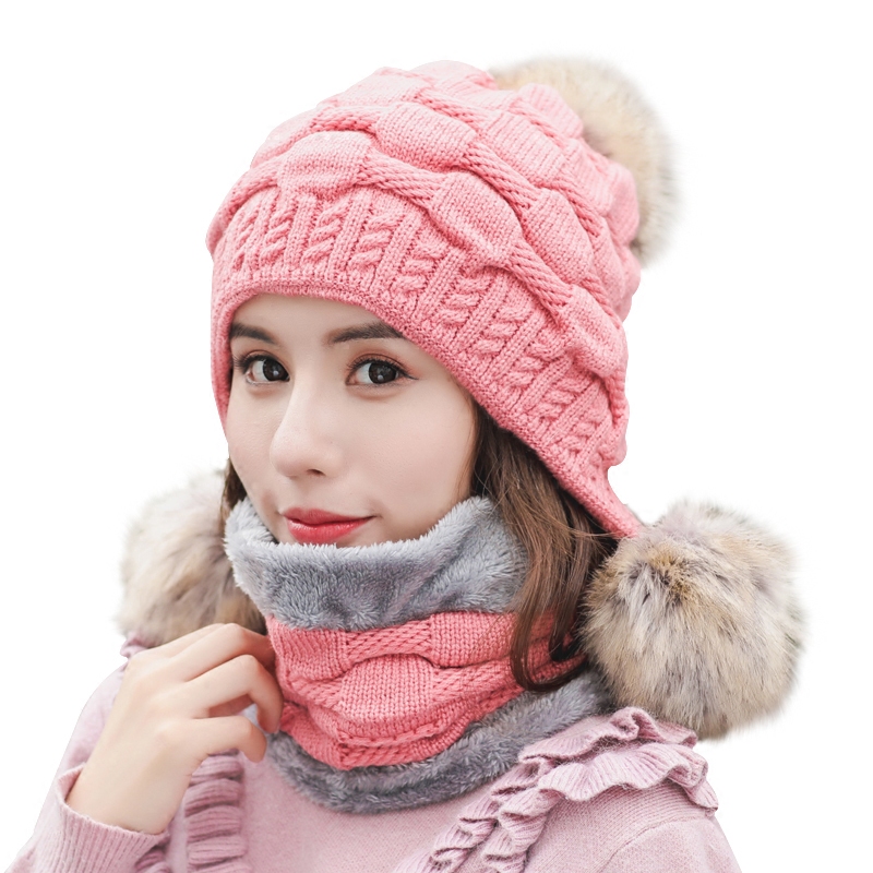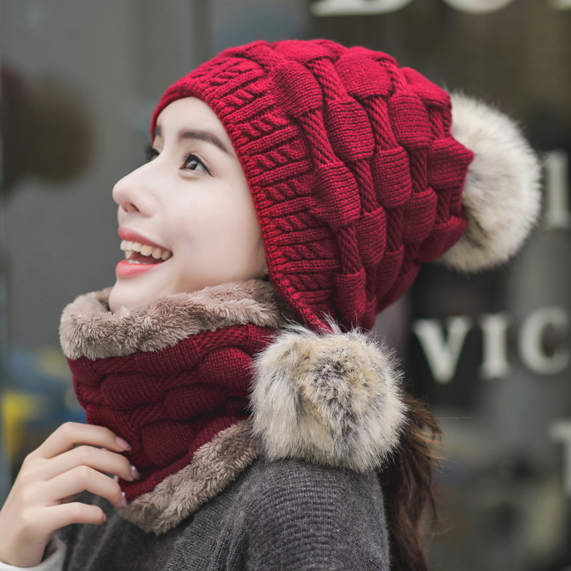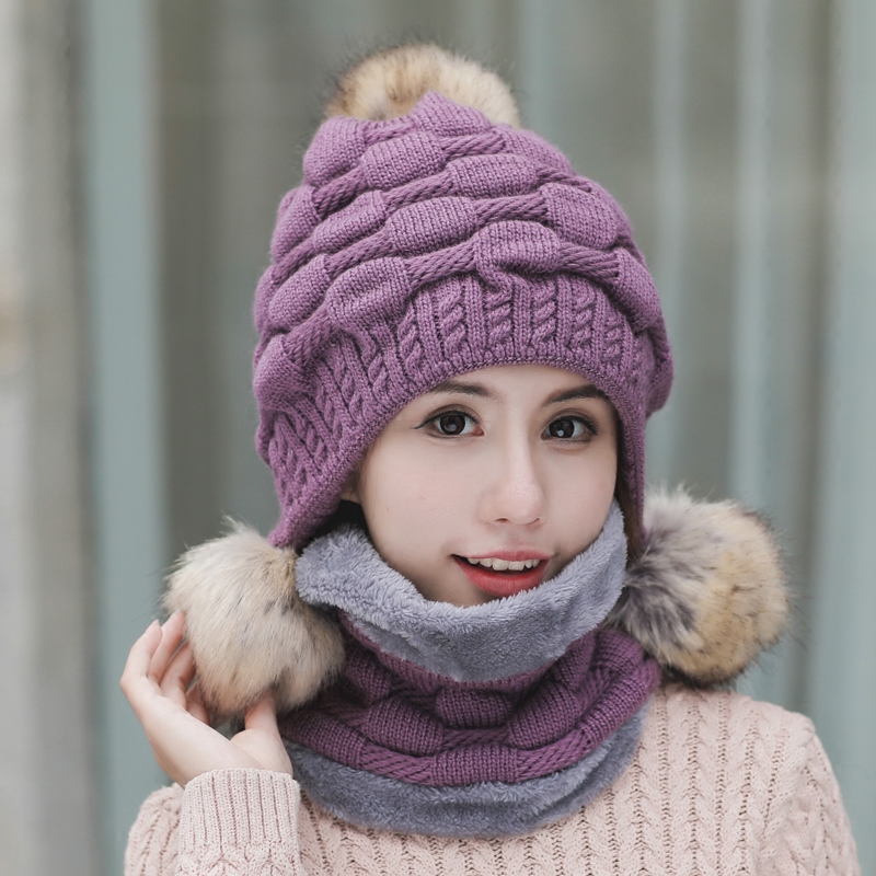Зимняя универсальная трикотажная шерстяная шапка, удерживающий тепло флисовый шарф, комплект, в корейском стиле, 2 предмета