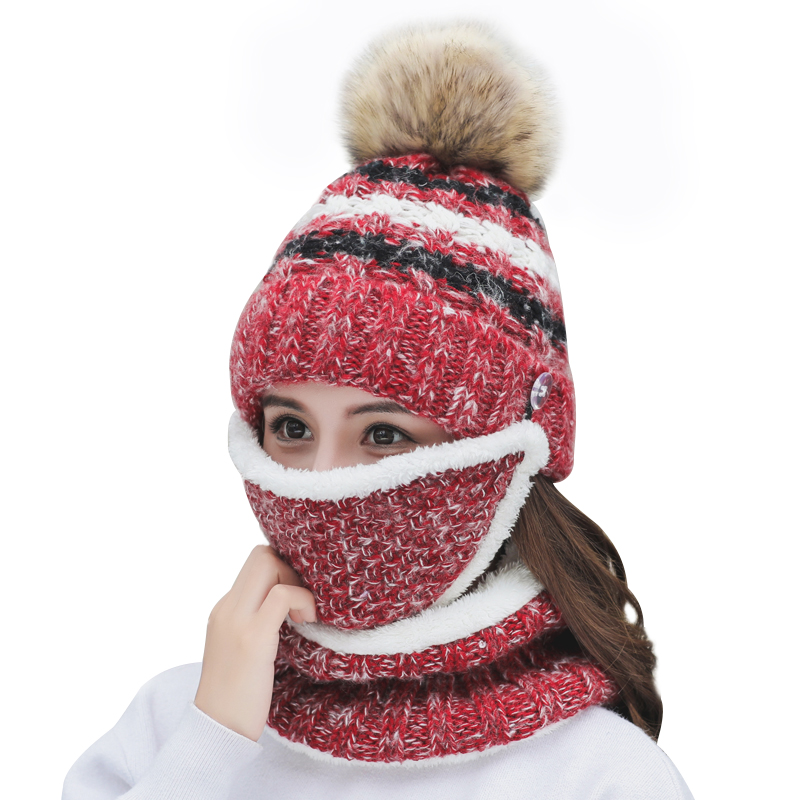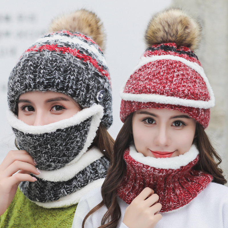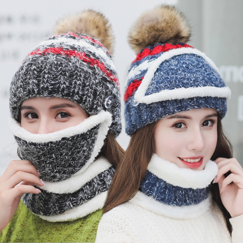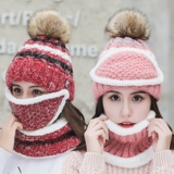 Зимняя универсальная модная шапка, утепленная удерживающая тепло медицинская маска, шарф, комплект, в корейском стиле, 3 предмета