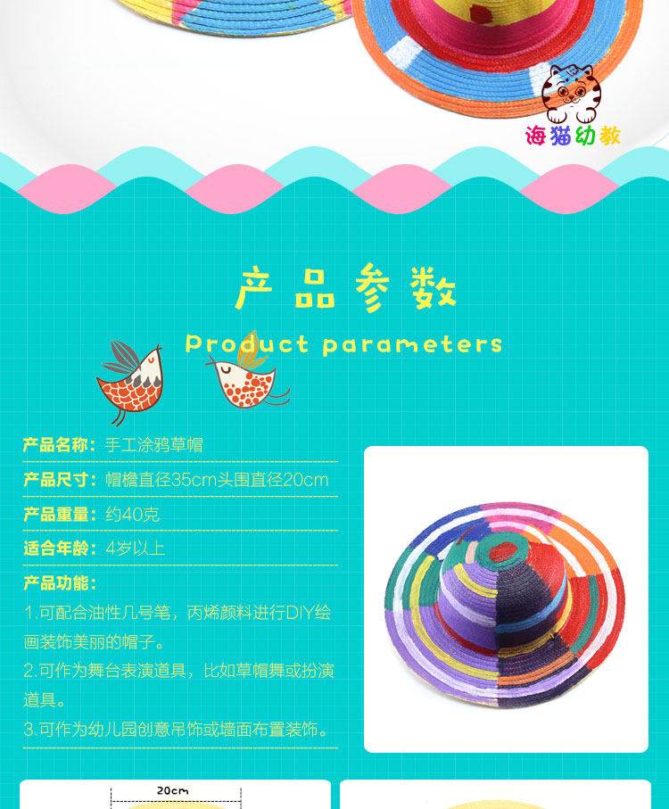 Десяти -летящий магазин более 20 цветов соломенная шляпа рисовать DIY Детская картина картинка детская среда творческая шляпа ручной работы