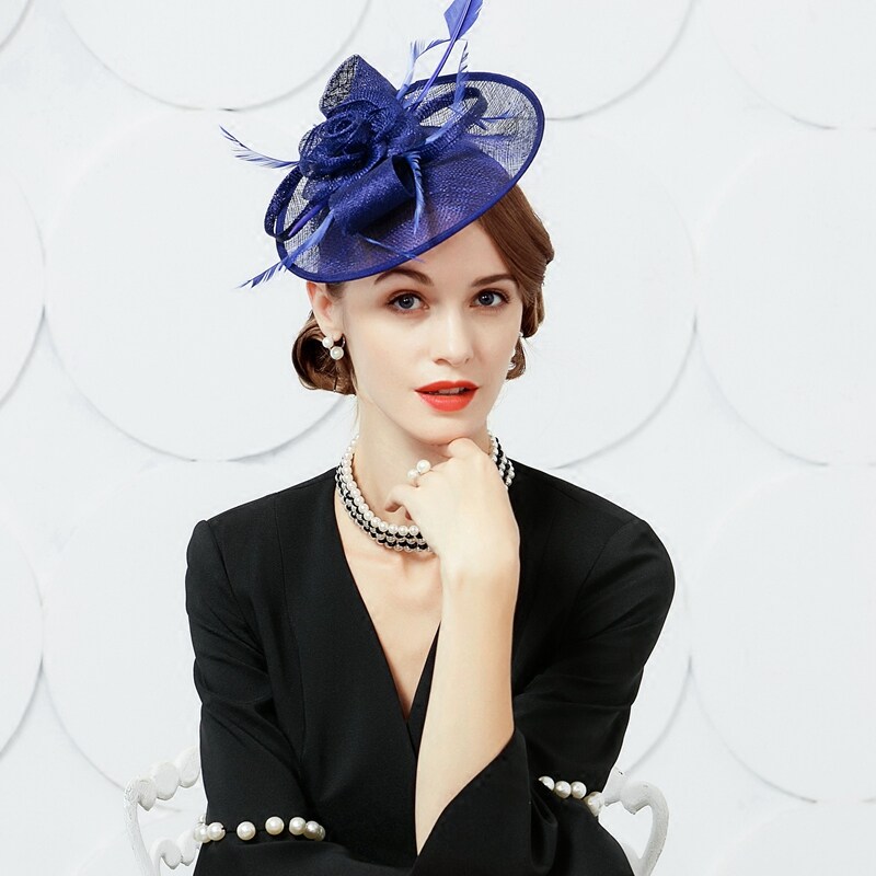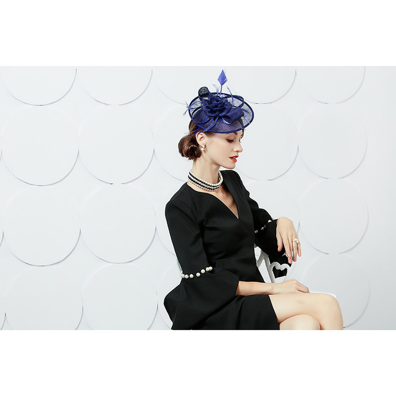 EE Новый оригинальный дизайн британский маленький шляп перья, конопля, элегантные дамы, формальная толстовка 2214