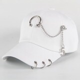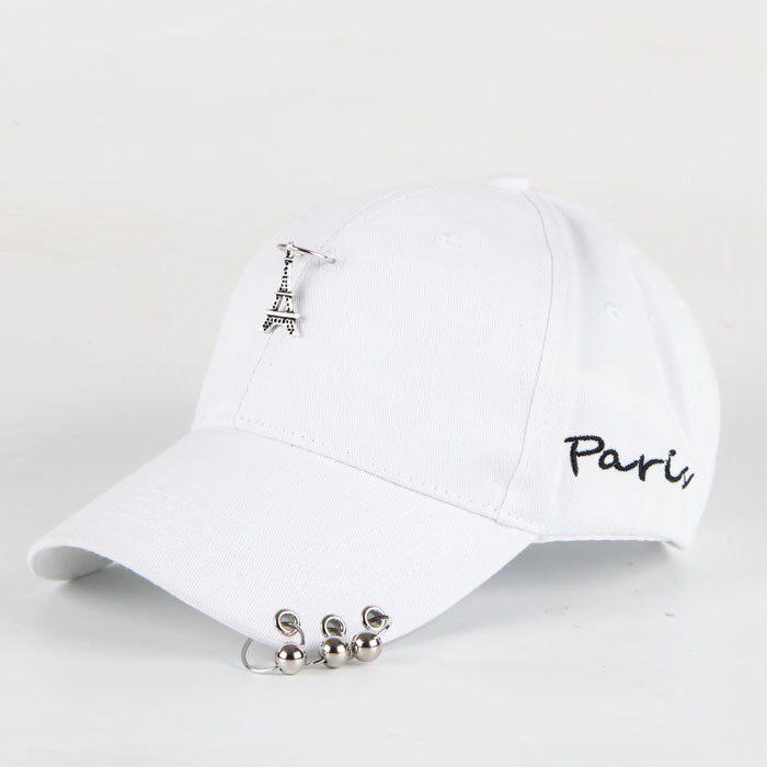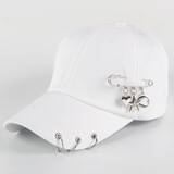 Шикарная креативная уличная танцевальная шляпа Женская бейсболка летняя красивая модная мужская сеть классический стиль с железным кольцом из пряжки Pure White Big