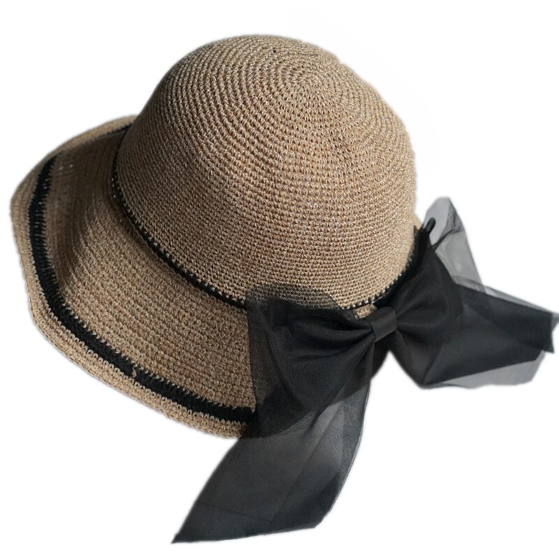 Белый июль l, связанная крючком и папирусом, съемный бант, небольшой аромат, простая складная шляпа от солнца