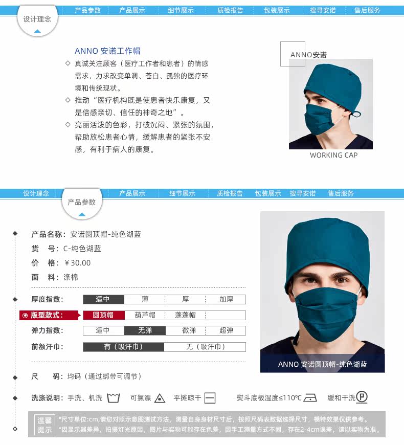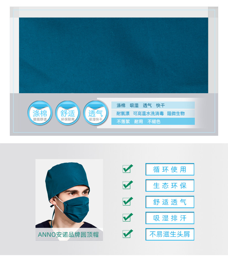 安诺 Цветная дышащая униформа медсестры, рабочая шапка подходит для мужчин и женщин, поликоттон