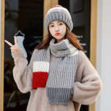 Милая удерживающая тепло шерстяная зимняя модная универсальная вязаная шапка, шарф, раздельный комплект, в корейском стиле
