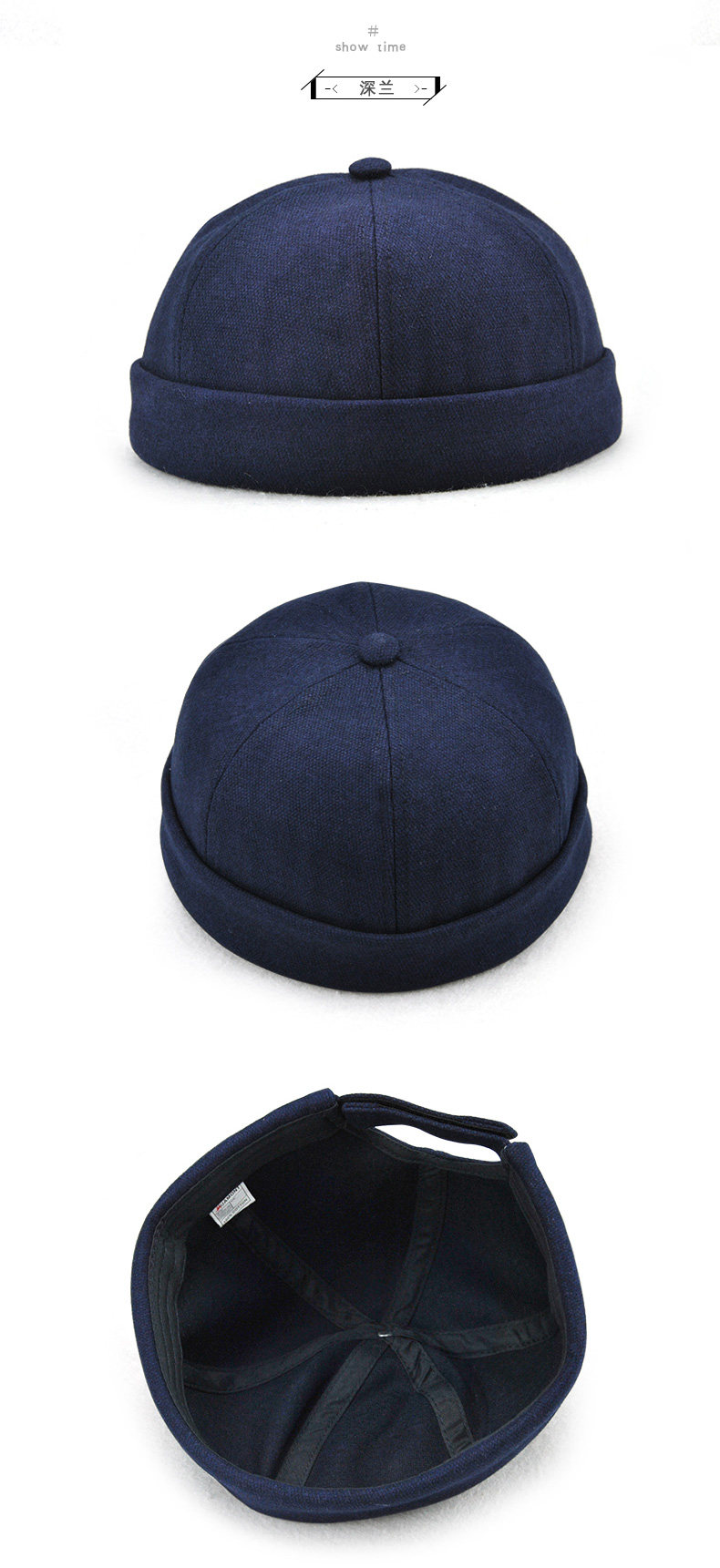 Национальная тенденция старая пекинская шляпа домовладельца модная ретро мужская и женская темно-синяя шляпа без полей Британская шляпа из арбузной кожи уличная мода зимняя