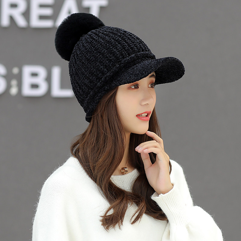 Шерстяная зимняя шапка, милая удерживающая тепло кепка, бейсболка, в корейском стиле