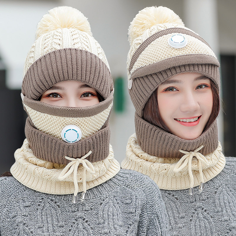 - Бежевая шапка, шарф, медицинская маска