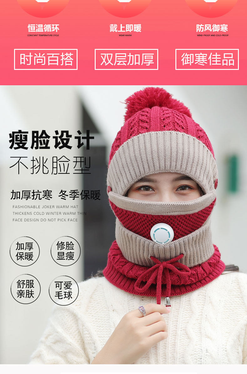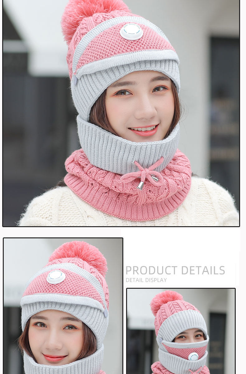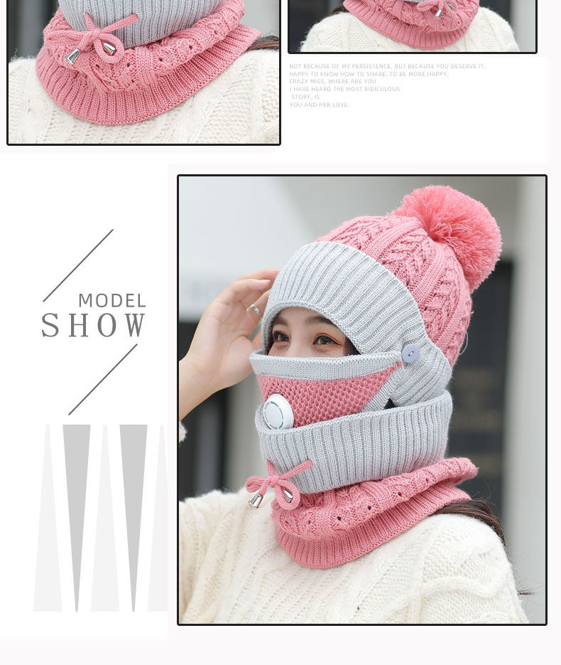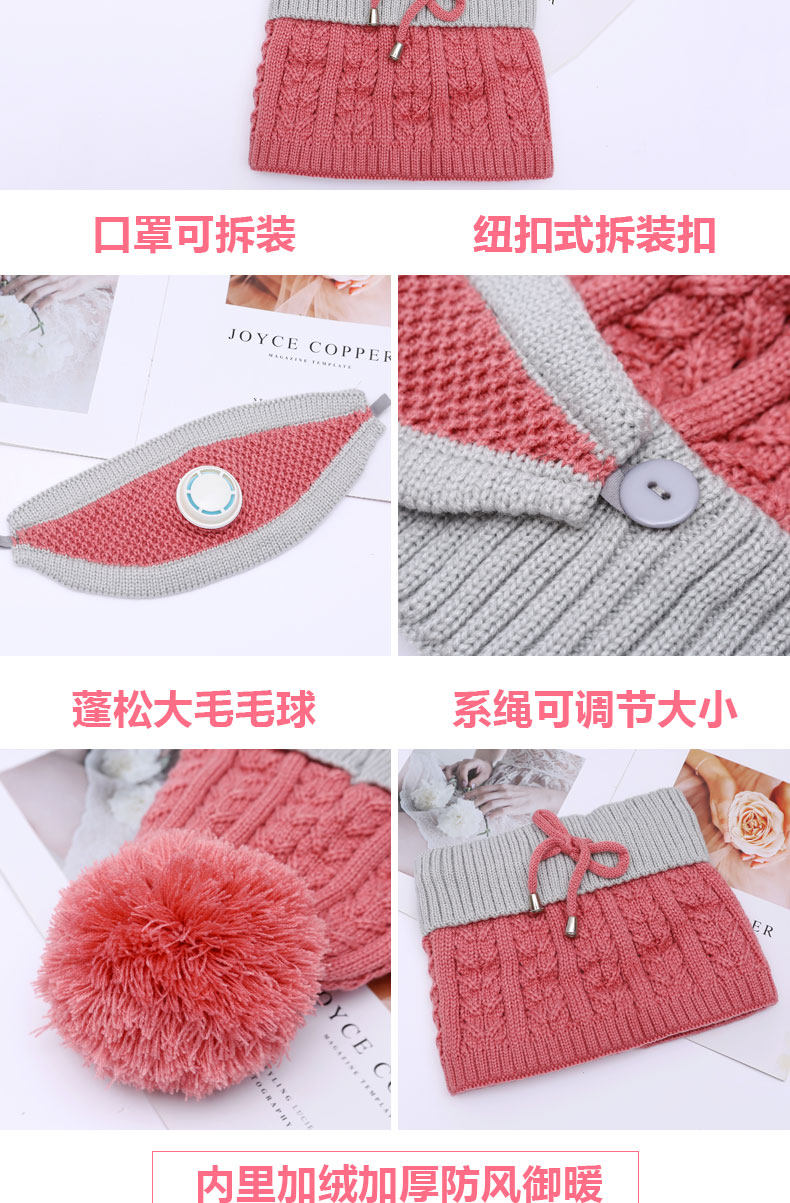 - Розовая шапка, шарф, медицинская маска