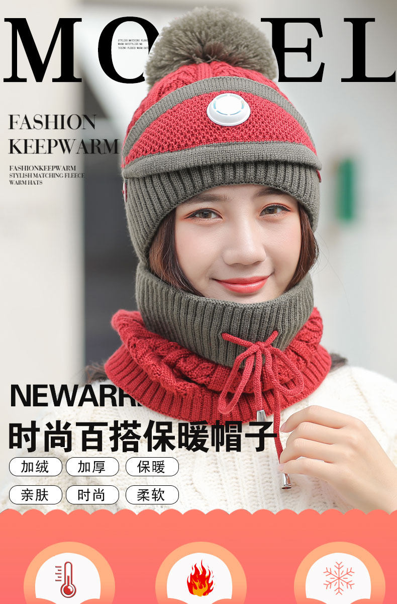 Ветрозащитная зимняя шапка, удерживающий тепло шерстяной утепленный трикотажный шарф, увеличенная толщина