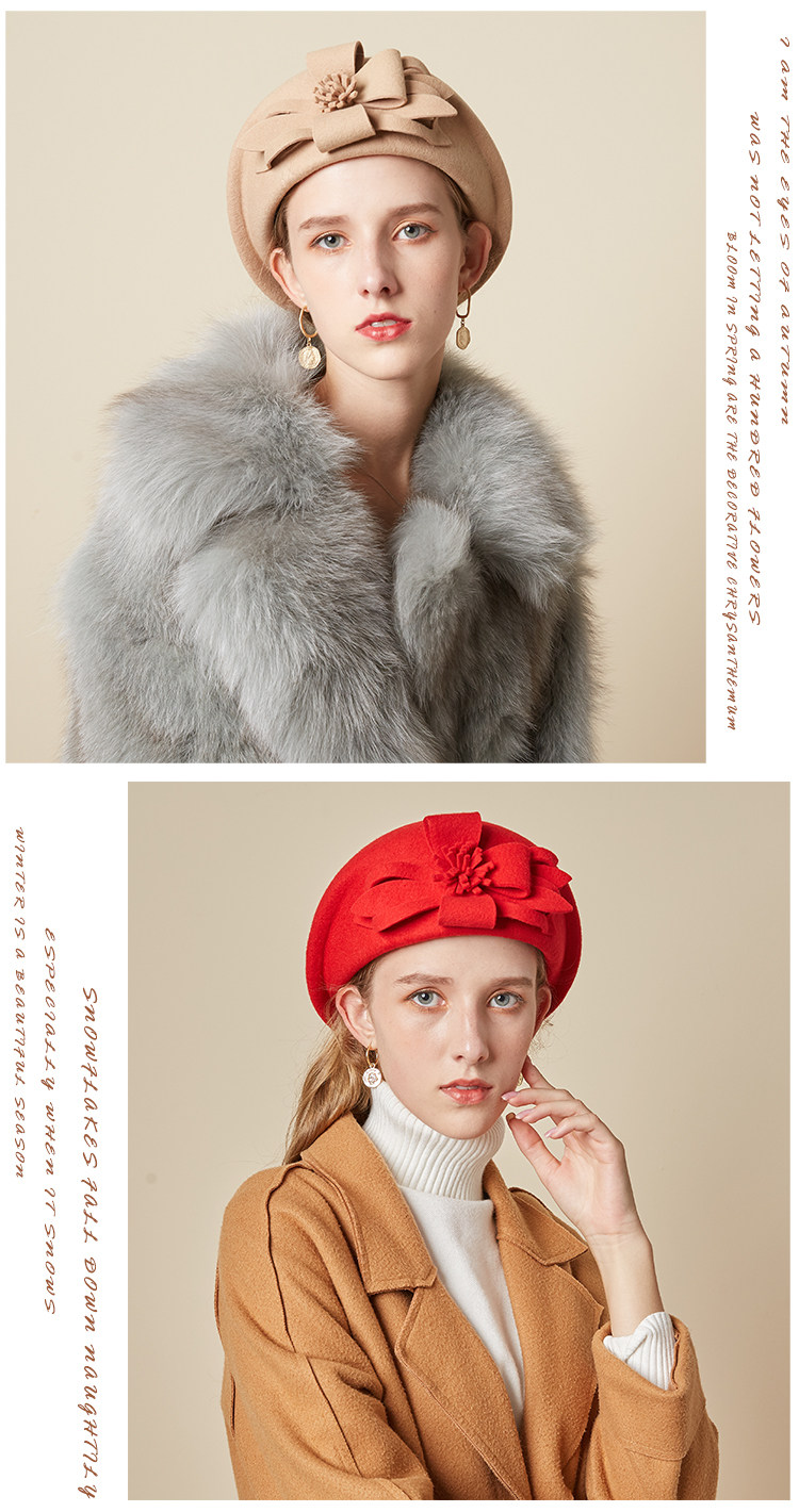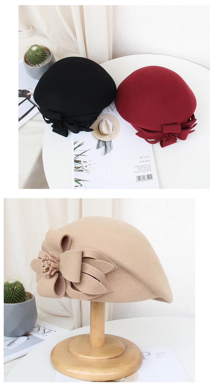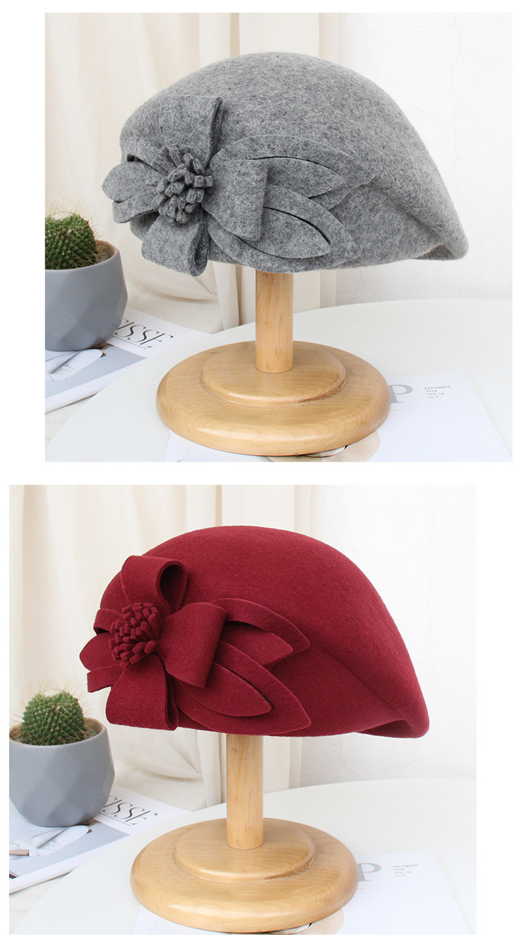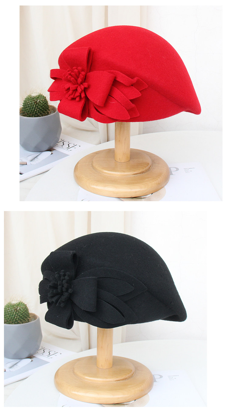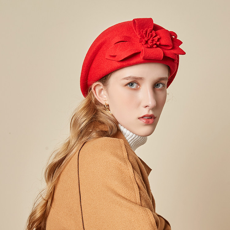 Демисезонная модная шерстяная ретро шапка, в цветочек