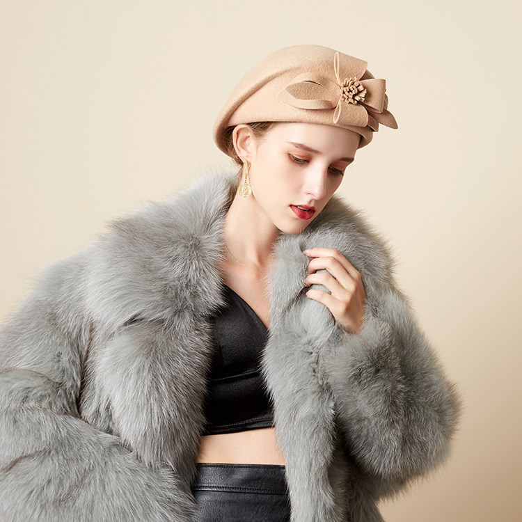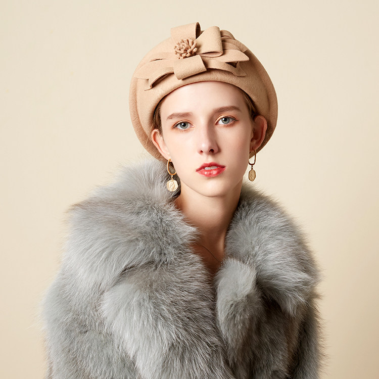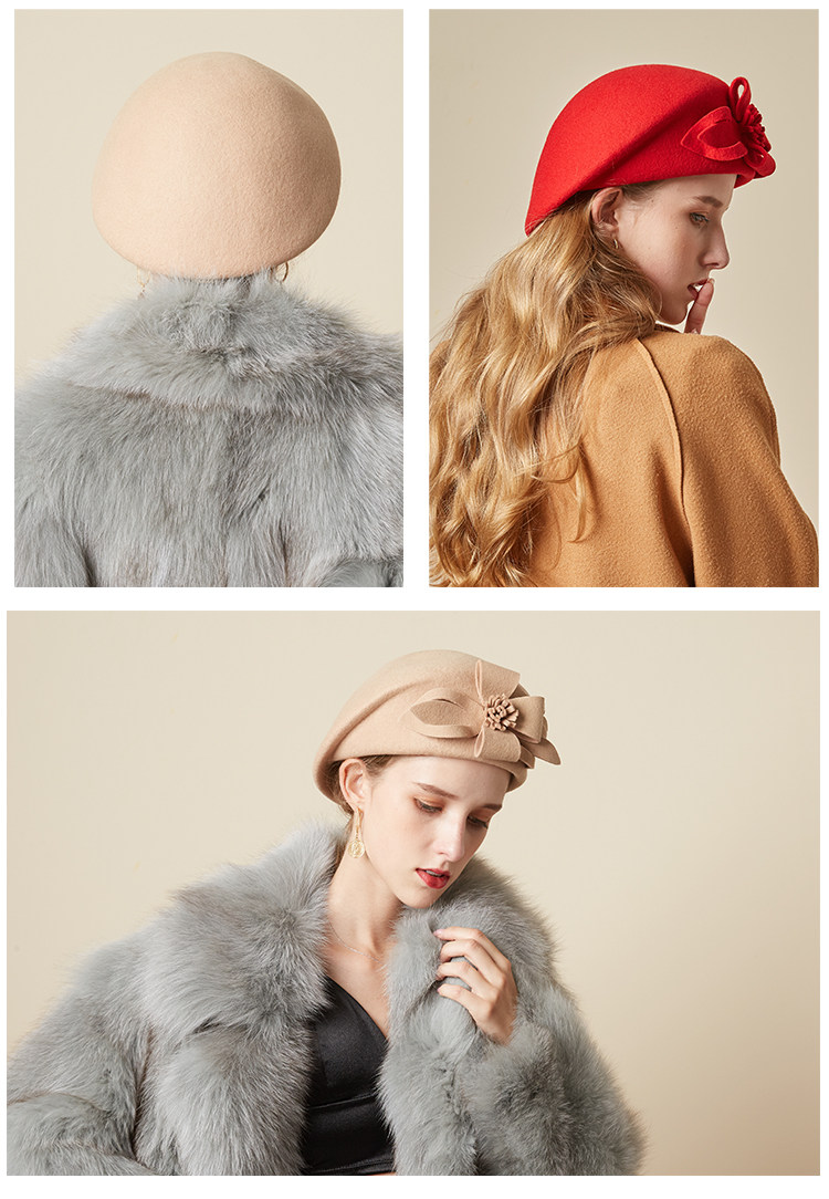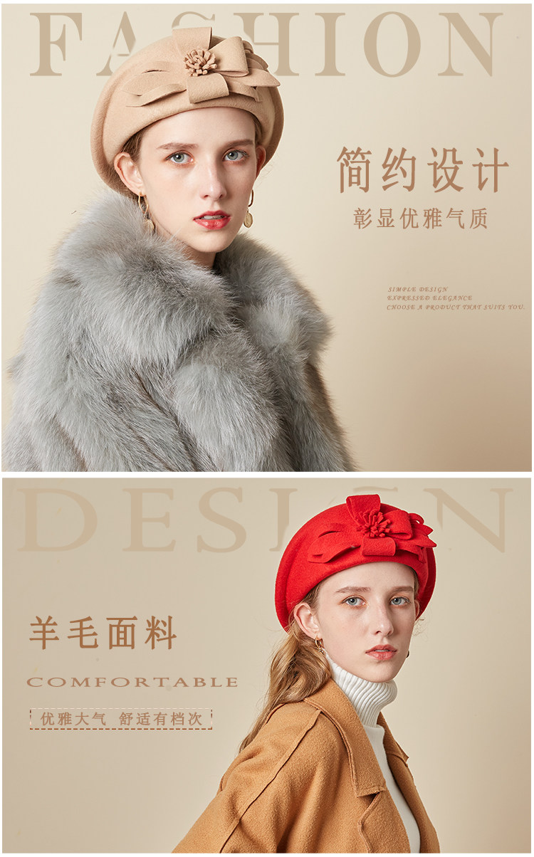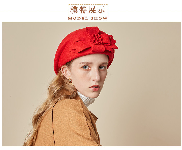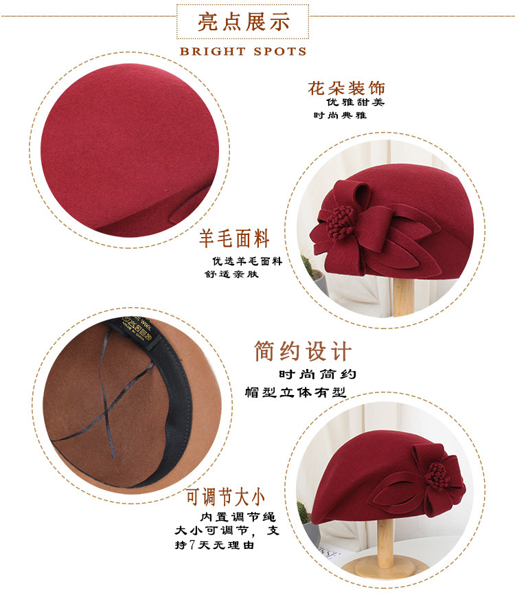 Демисезонная модная шерстяная ретро шапка, в цветочек