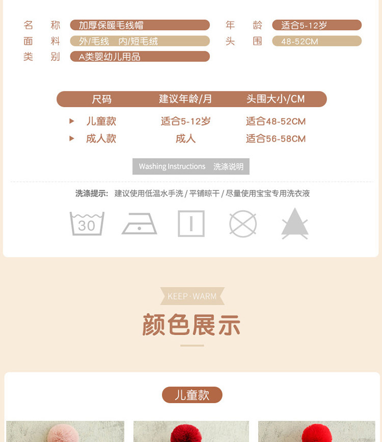 Утепленная шерстяная зимняя детская демисезонная вязаная шапка подходит для мужчин и женщин, семейный стиль