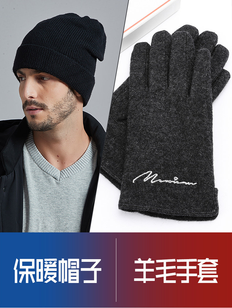 Шерстяная шапка, перчатки, мужской демисезонный удерживающий тепло модный комплект, в корейском стиле, городской стиль
