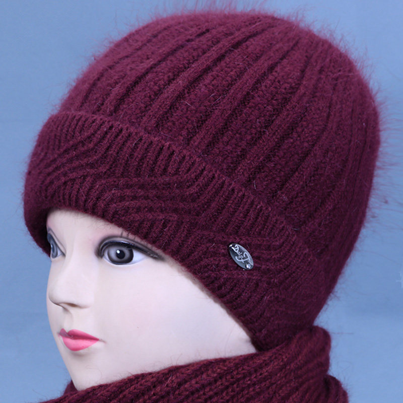 Демисезонная шерстяная трикотажная утепленная шапка для матери с капюшоном