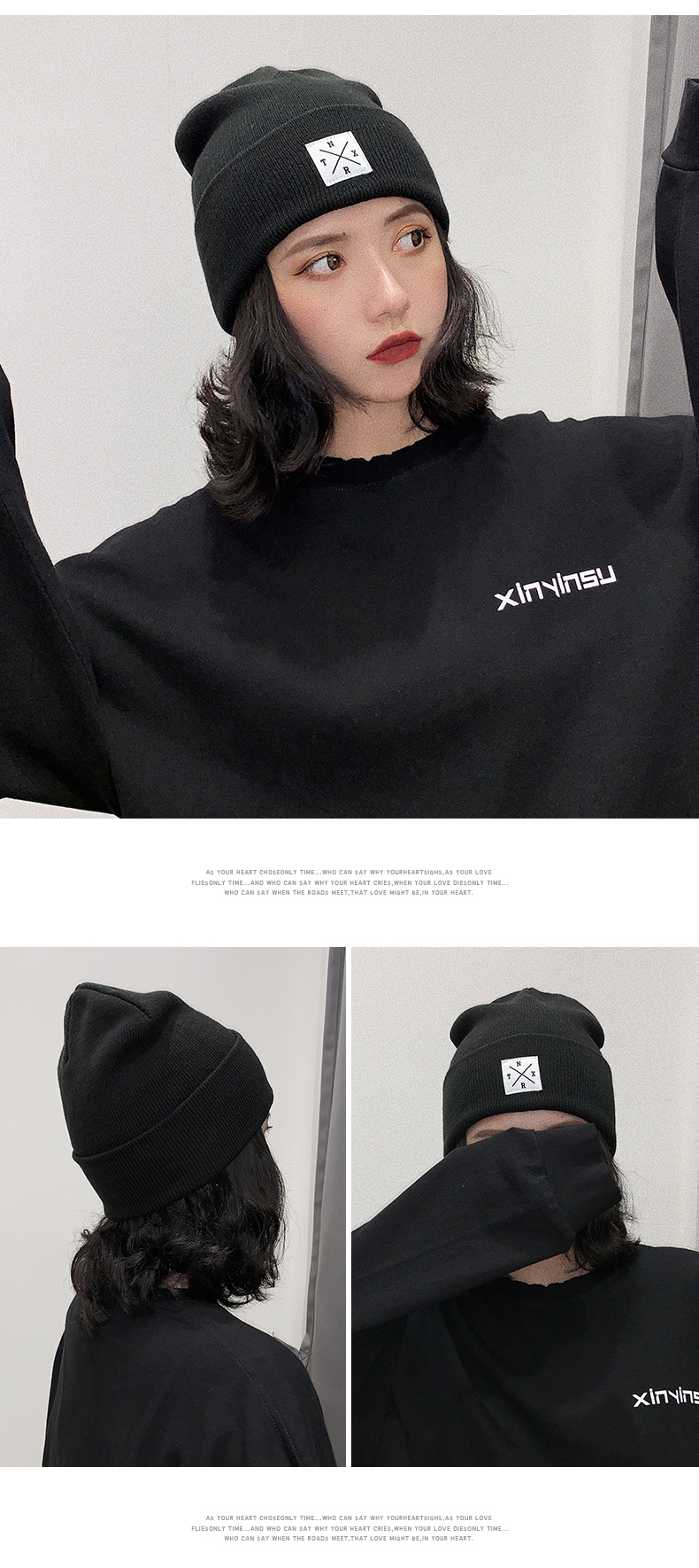 Tide, трикотажная шерстяная шапка, демисезонная зимняя японская кепка, в корейском стиле