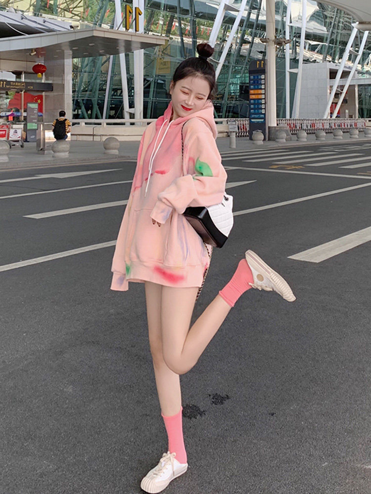 Демисезонная струйная длинная толстовка с капюшоном, 2020, популярно в интернете, свободный крой, средней длины, увеличенная толщина, большой размер