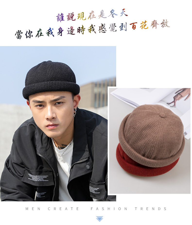 Мужская японская демисезонная трендовая модная вязаная шапка в стиле хип-хоп