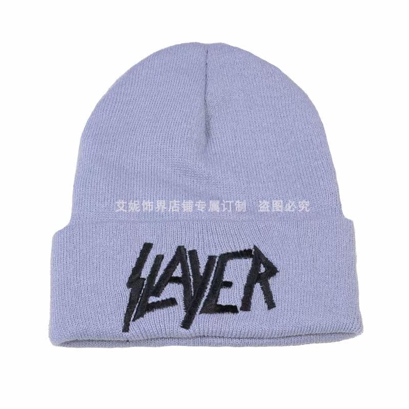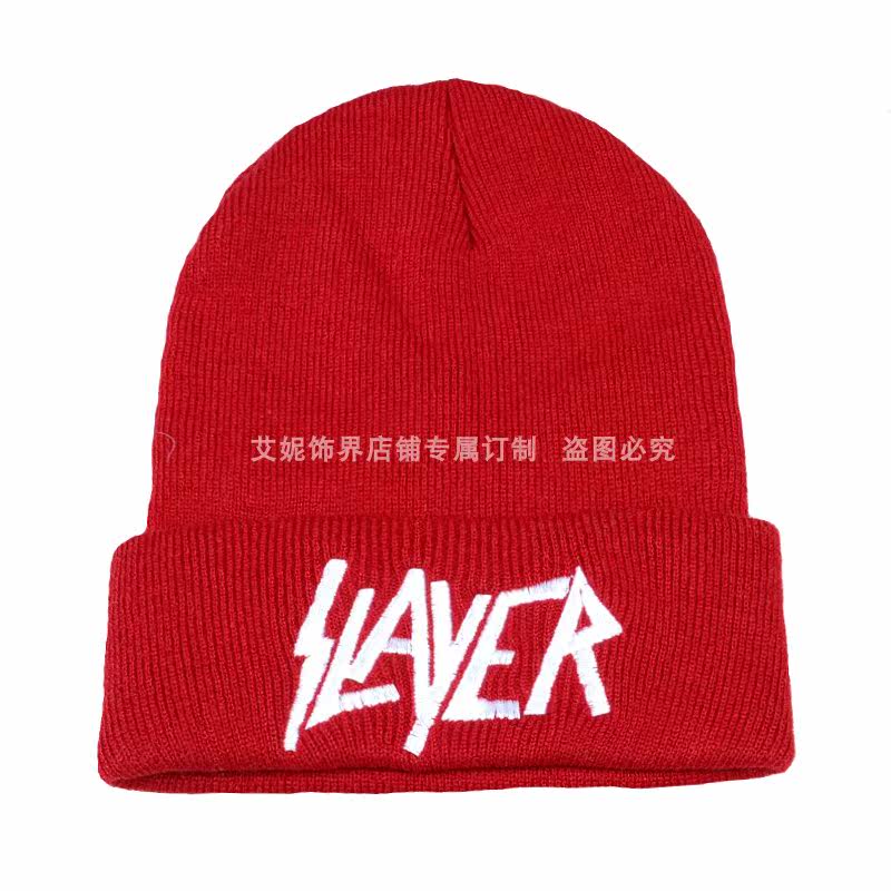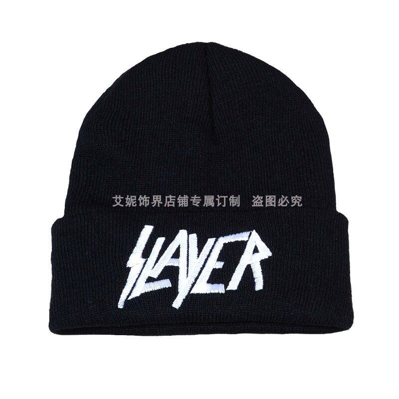 Европейская и американская осенняя и зимняя новая металлическая металлическая группа, вышитая вязаная шерстяная шапка, рок -группа Cold Hat