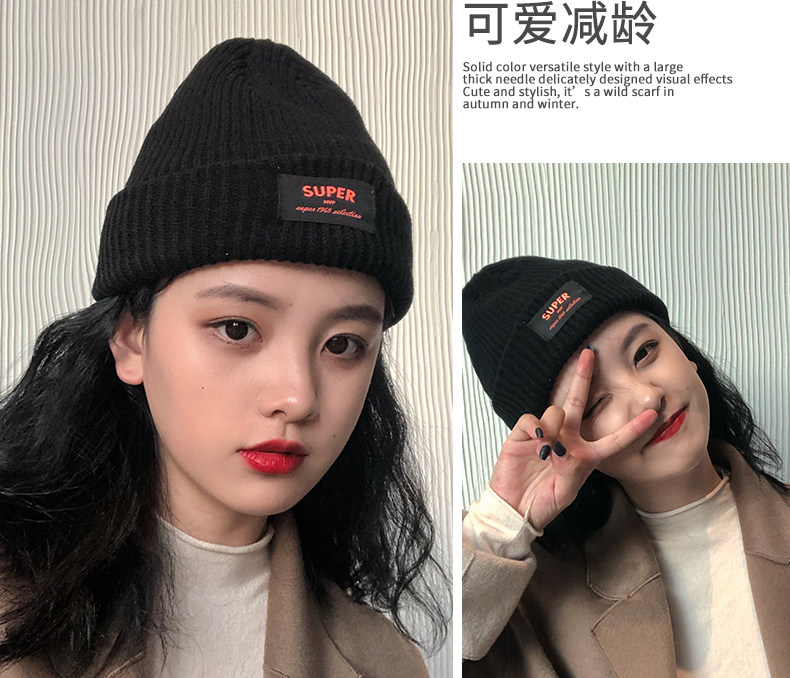 艾佳微 Шерстяная демисезонная японская милая удерживающая тепло вязаная шапка, в корейском стиле