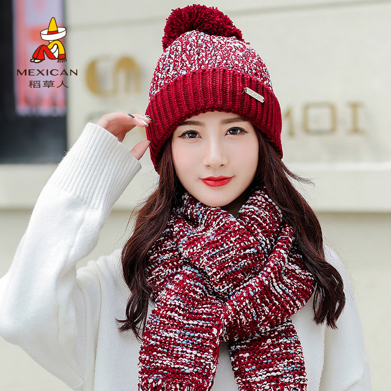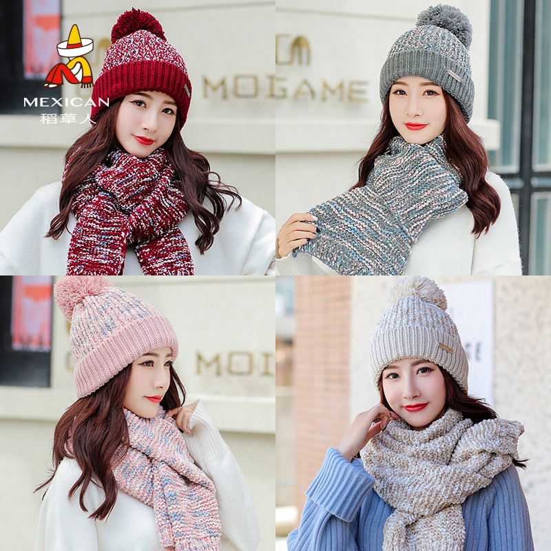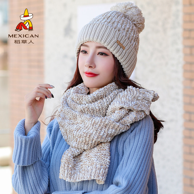 Демисезонная шапка, трикотажный шерстяной модный универсальный шарф, в корейском стиле, популярно в интернете, 2019