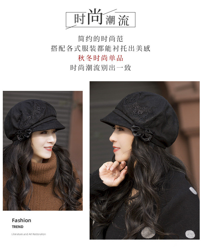 Модная универсальная осенняя шапка, универсальный кружевной берет для пожилых людей для матери, в корейском стиле, для среднего возраста, 40 лет