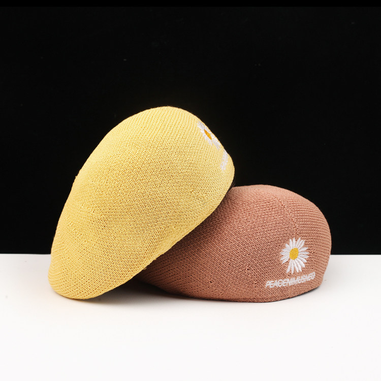 Корейский новый стиль маленькой вышивки Daisy для женского летнего стиля, дышащая британская шляпа с задним ношкой, японская вязаная универсальная шляпа