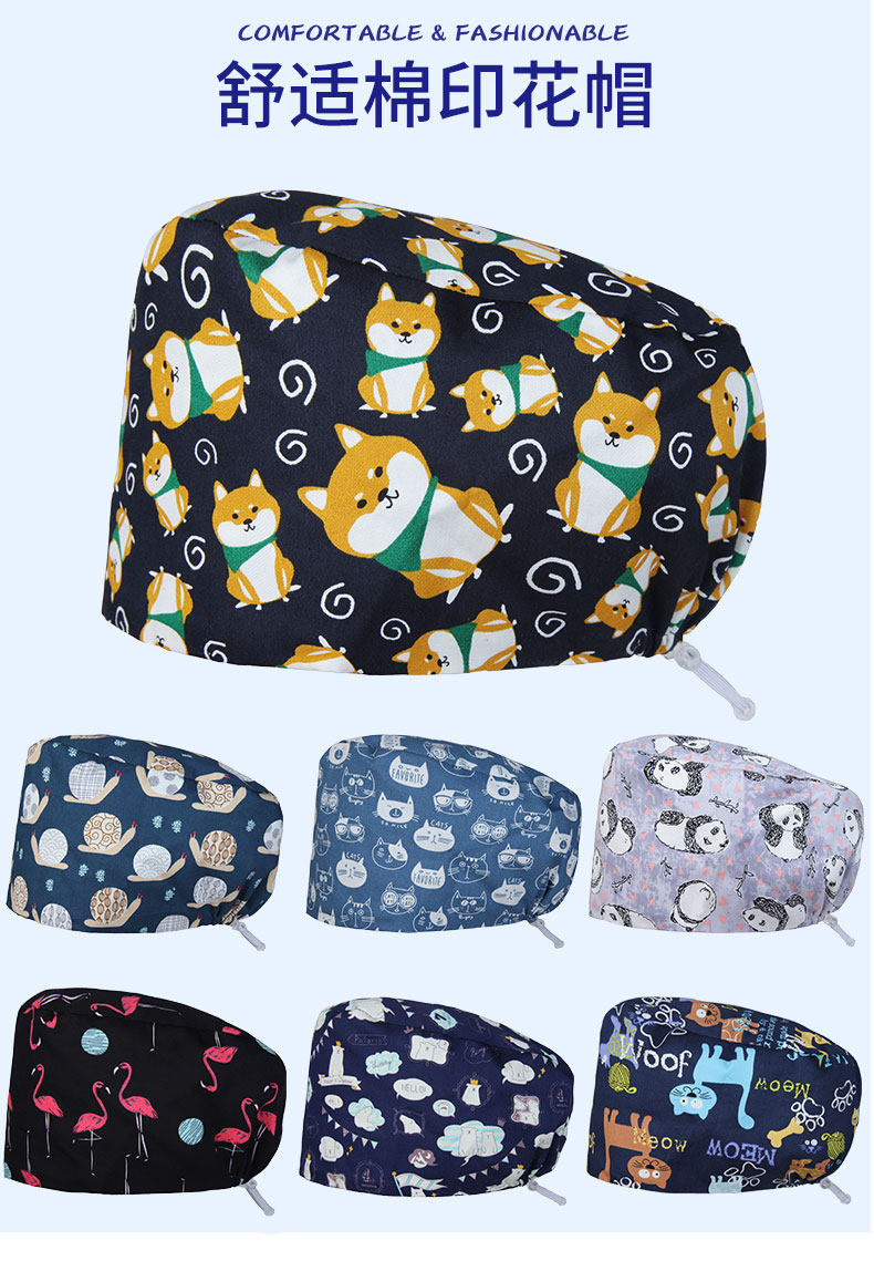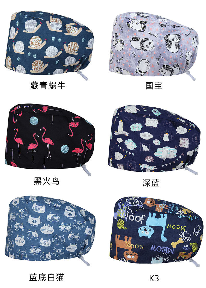 亮羽 Хирургия шляпа женская печать хлопчатобумажной шляпы Доктор Шляпа, шляпа головы, пот -поглощение домашних животных салон Рабочая шляпа
