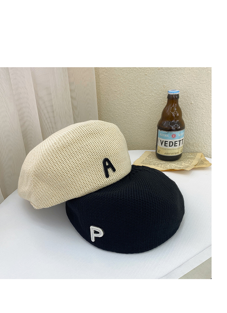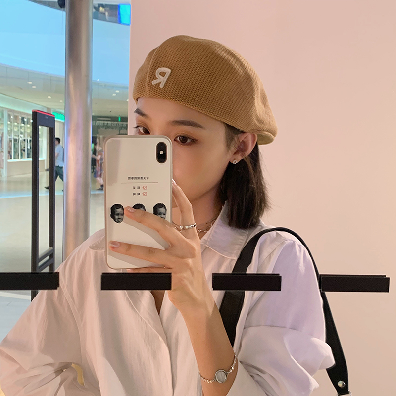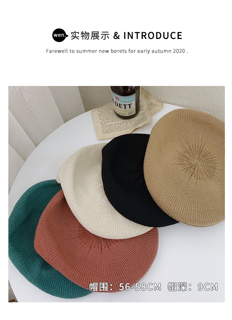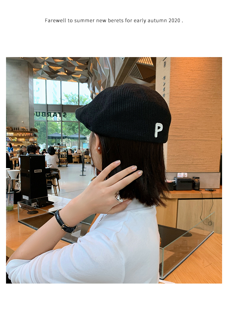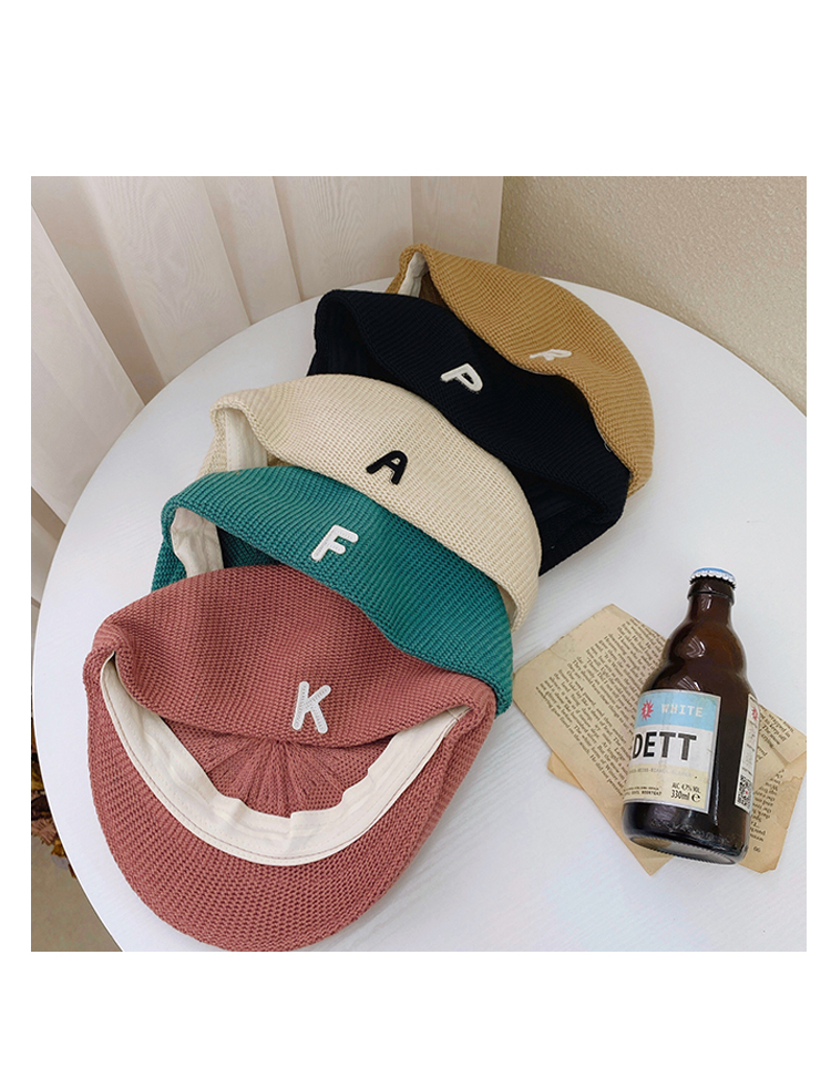 Трикотажный летний тонкий берет, ретро брендовая шапка с буквами, в корейском стиле