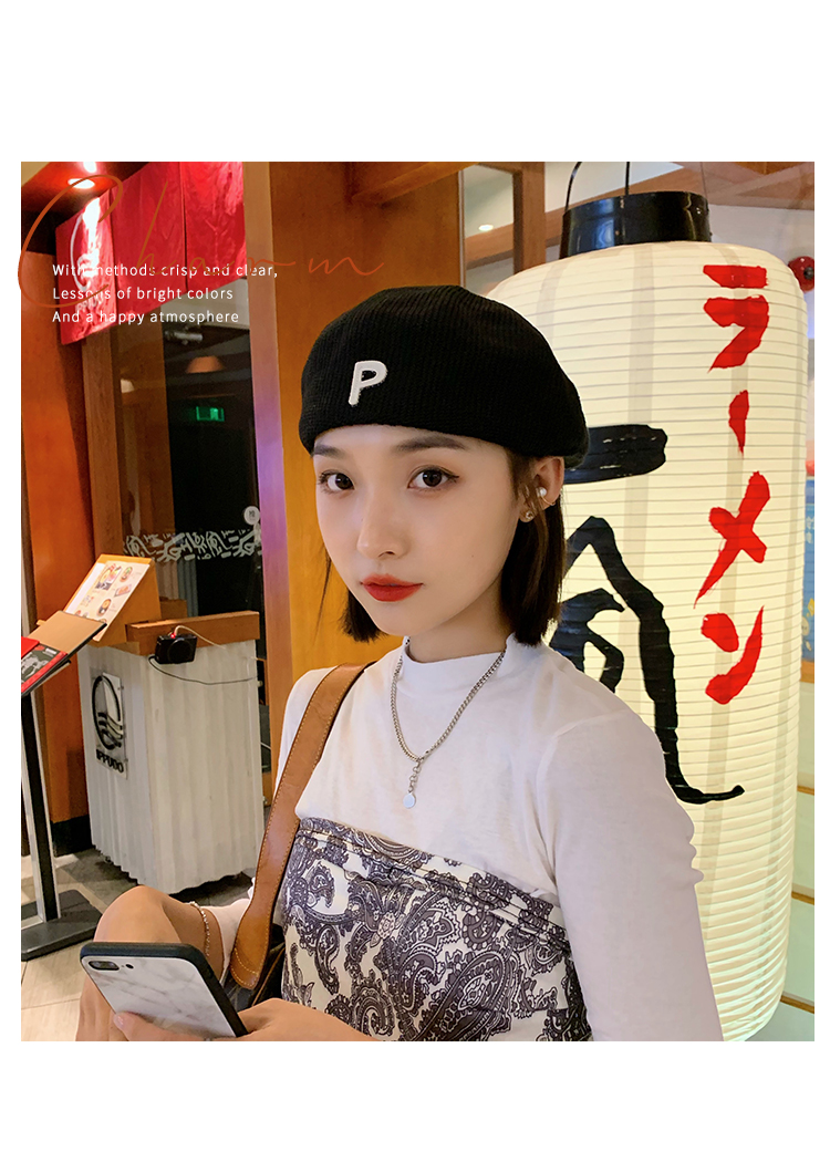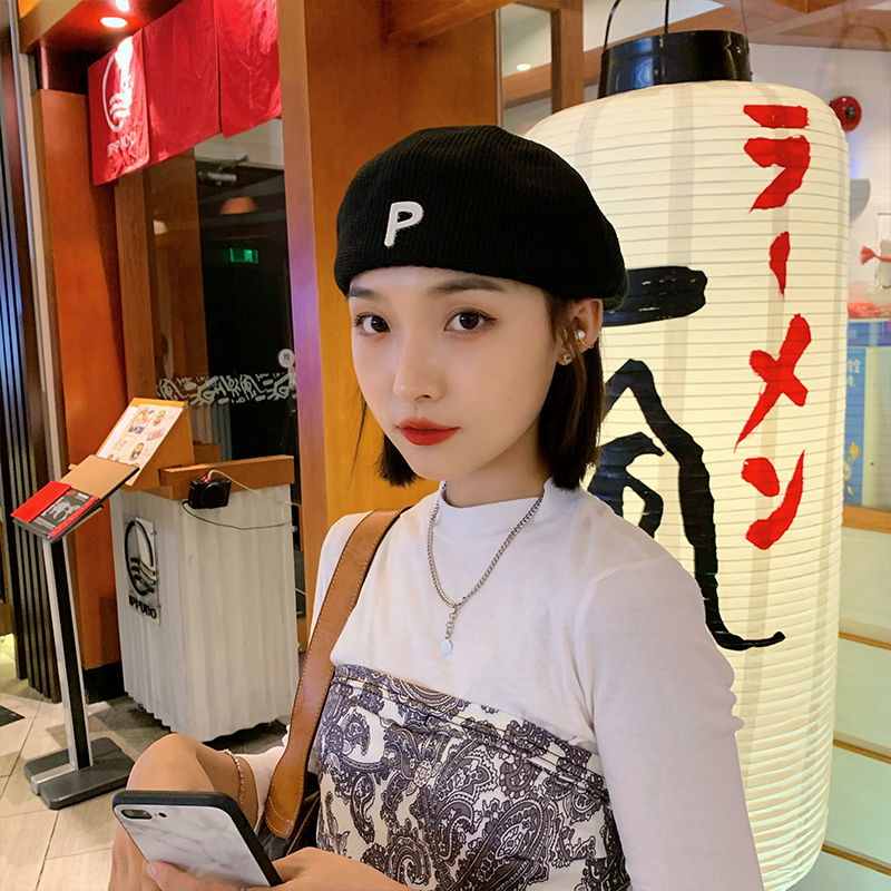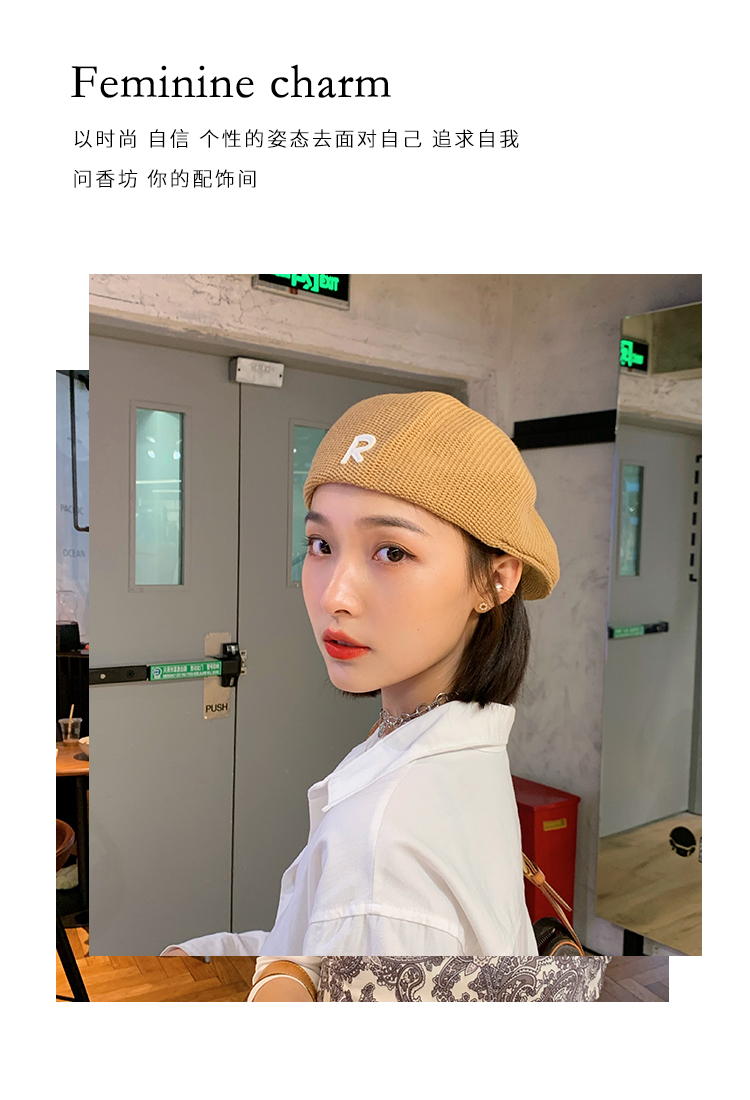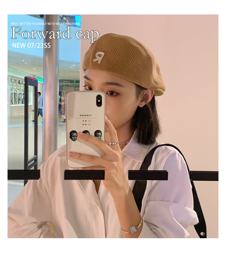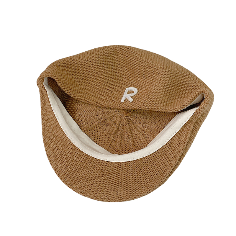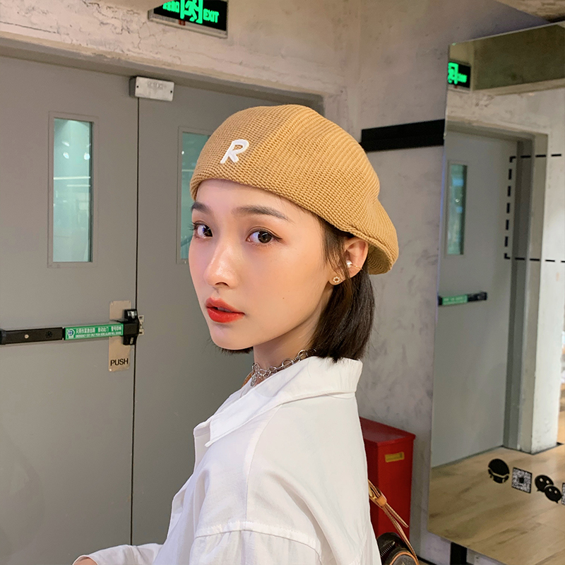 Трикотажный летний тонкий берет, ретро брендовая шапка с буквами, в корейском стиле